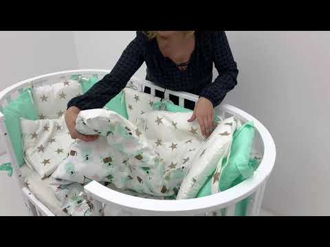 - подойдет как для прямоугольной, так и для овальной кроватки