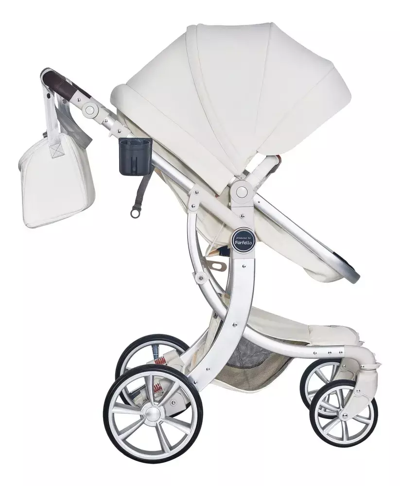 Коляска комплектуется удобным подстаканником, большим многофункциональным флисовым конвертом для ребенка, дождевиком и сумкой - органайзером.