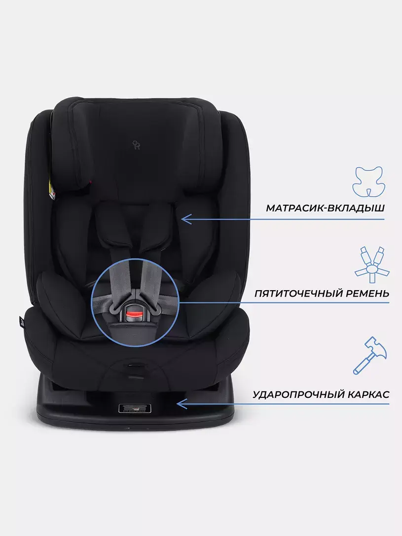- 5-точечные ремни обеспечат полную безопасность, а плечевые накладки не дадут выскользнуть малышу при ударе