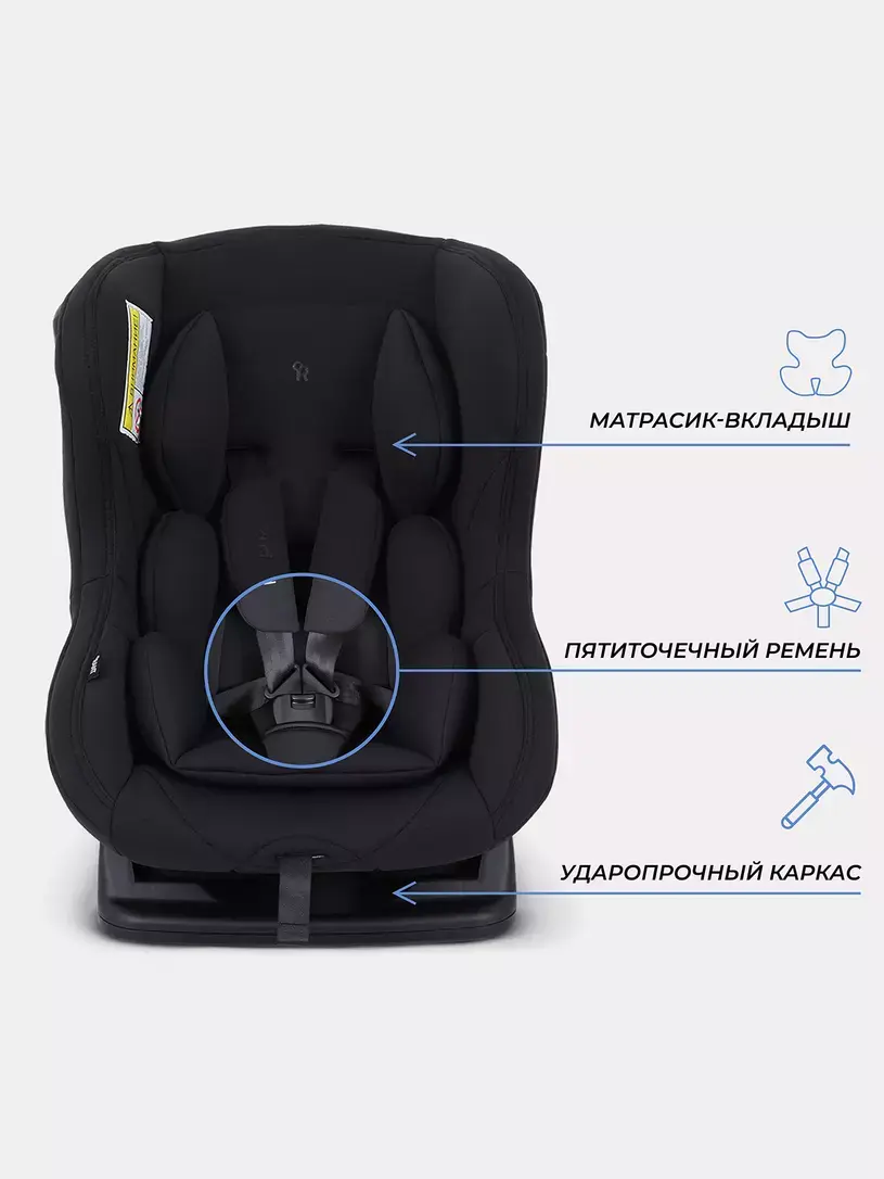 - 5-точечные ремни обеспечат полную безопасность, а плечевые накладки не дадут выскользнуть малышу при ударе