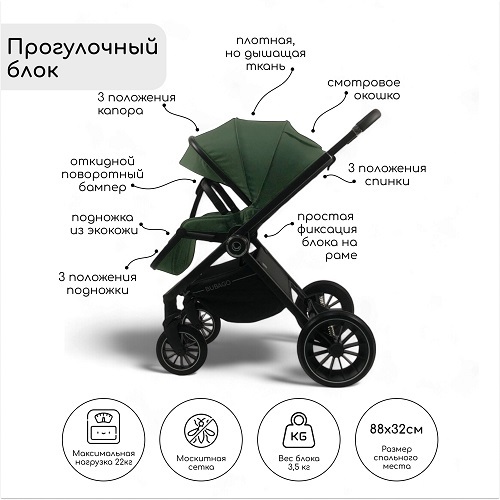 Детская коляска Bubago BLOOM 2in1 арт. BG 134-3 цвет Зеленый