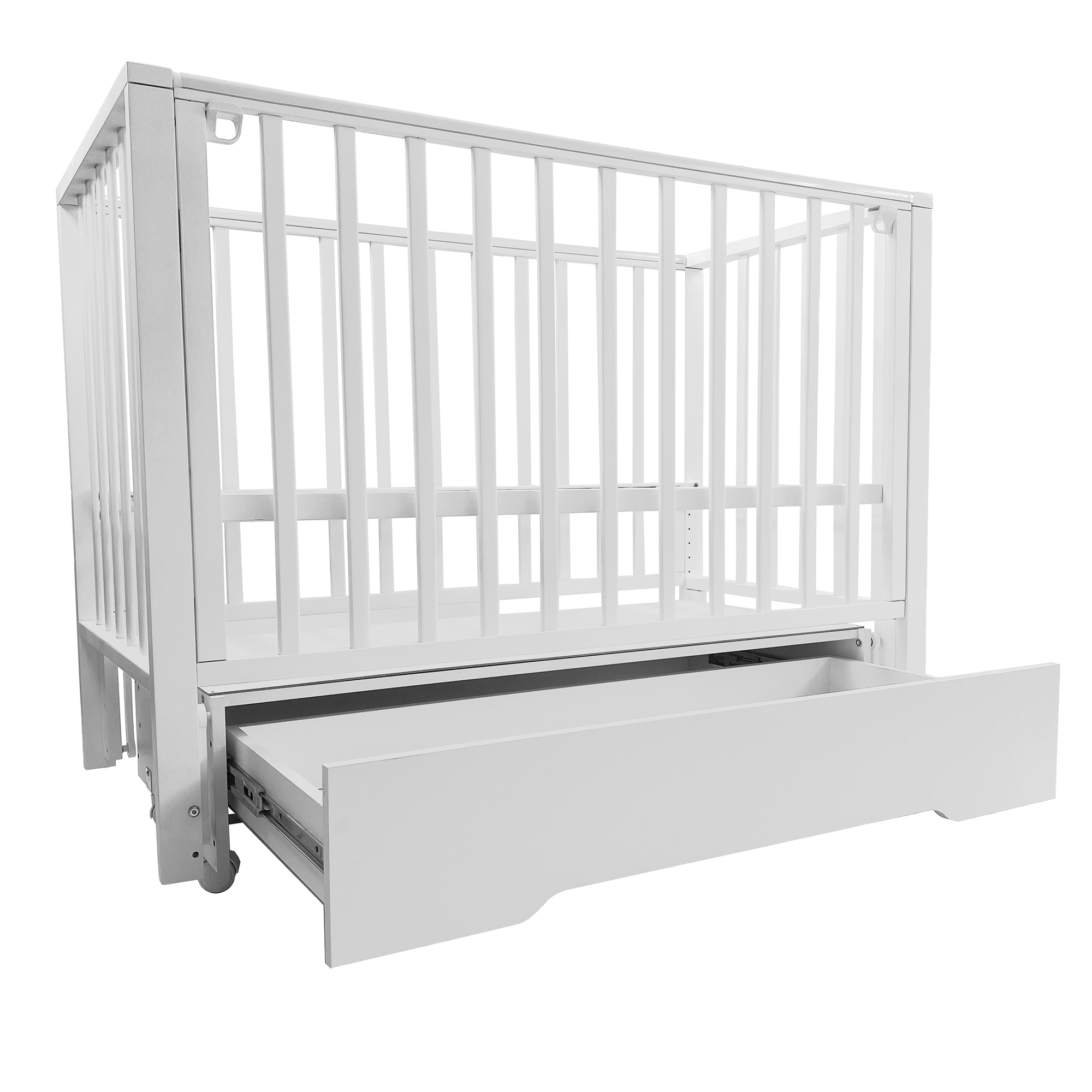 Вместительный ящик с доводчиком идеально подойдет для хранения детских принадлежностей — все в одном месте и без лишнего шума. Универсальный (продольный и поперечный) маятник работает плавно и бесшумно.