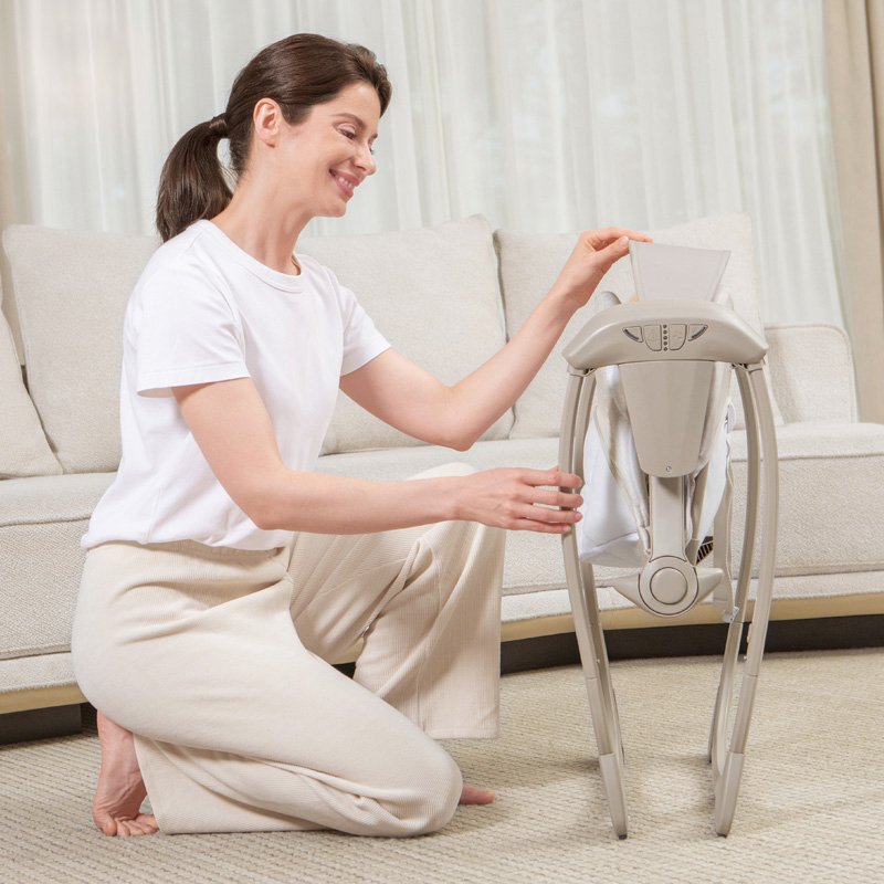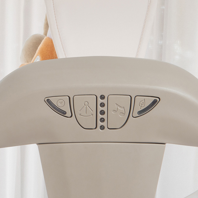 - 3 режима таймера автоматического отключения: 15, 30 и 45 минут. Родители могут выбрать, как долго качели будет работать, не беспокоясь, что малыш заснёт, а устройство продолжит качать.