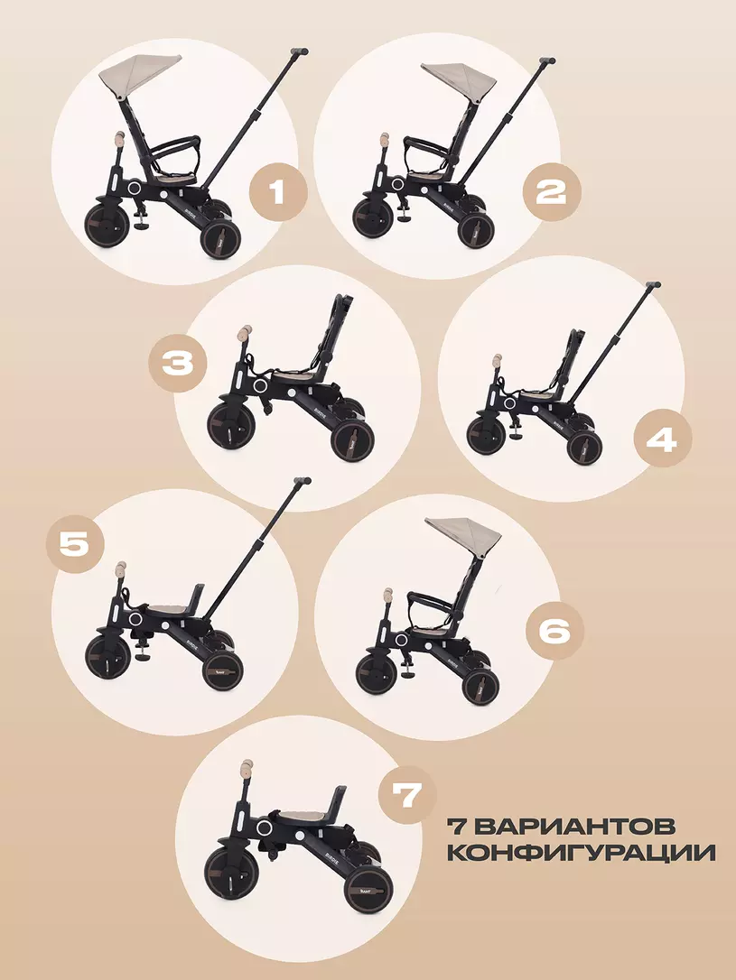 • уникальный трансформер, имеющий 7! вариантов конфигураций, о чем свидетельствует множество съемных/складных элементов (бампер, высокая спинка, капюшон, ручка)