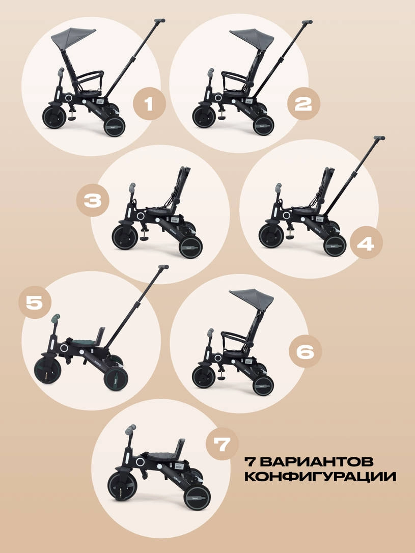 - уникальный трансформер, имеющий 7! вариантов конфигураций, о чем свидетельствует множество съемных/складных элементов (бампер, высокая спинка, капюшон, ручка)
