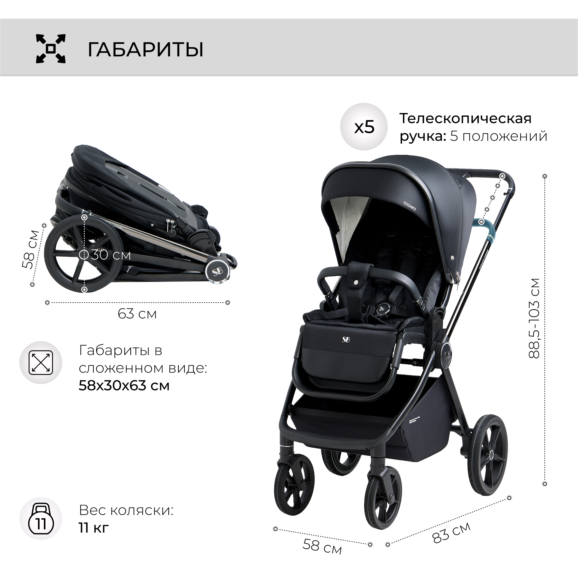 ✔ вес коляски всего 11,5 кг.