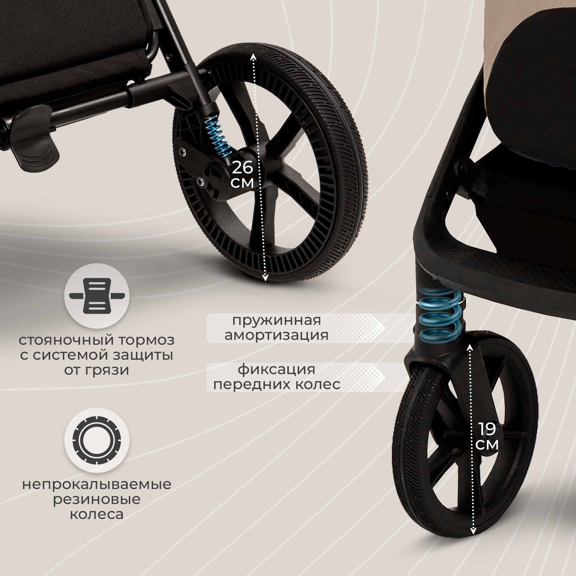 - Большие непрокалываемые колеса с мягкой амортизацией легко справятся с бездорожьем, включая снежные сугробы, грязь и бордюры.