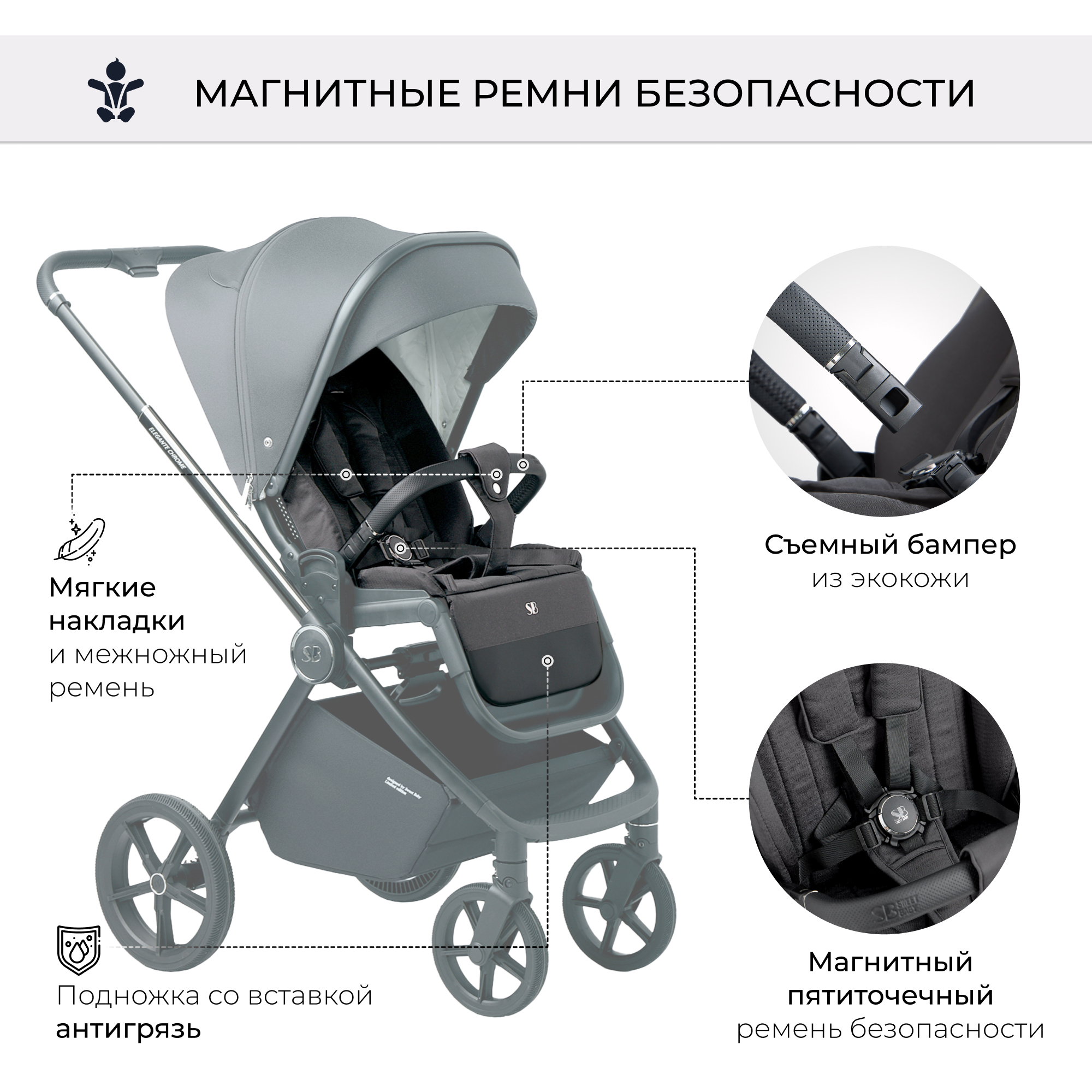 ✔ бампер из эко-кожи легко поворачивается в сторону для посадки малыша;