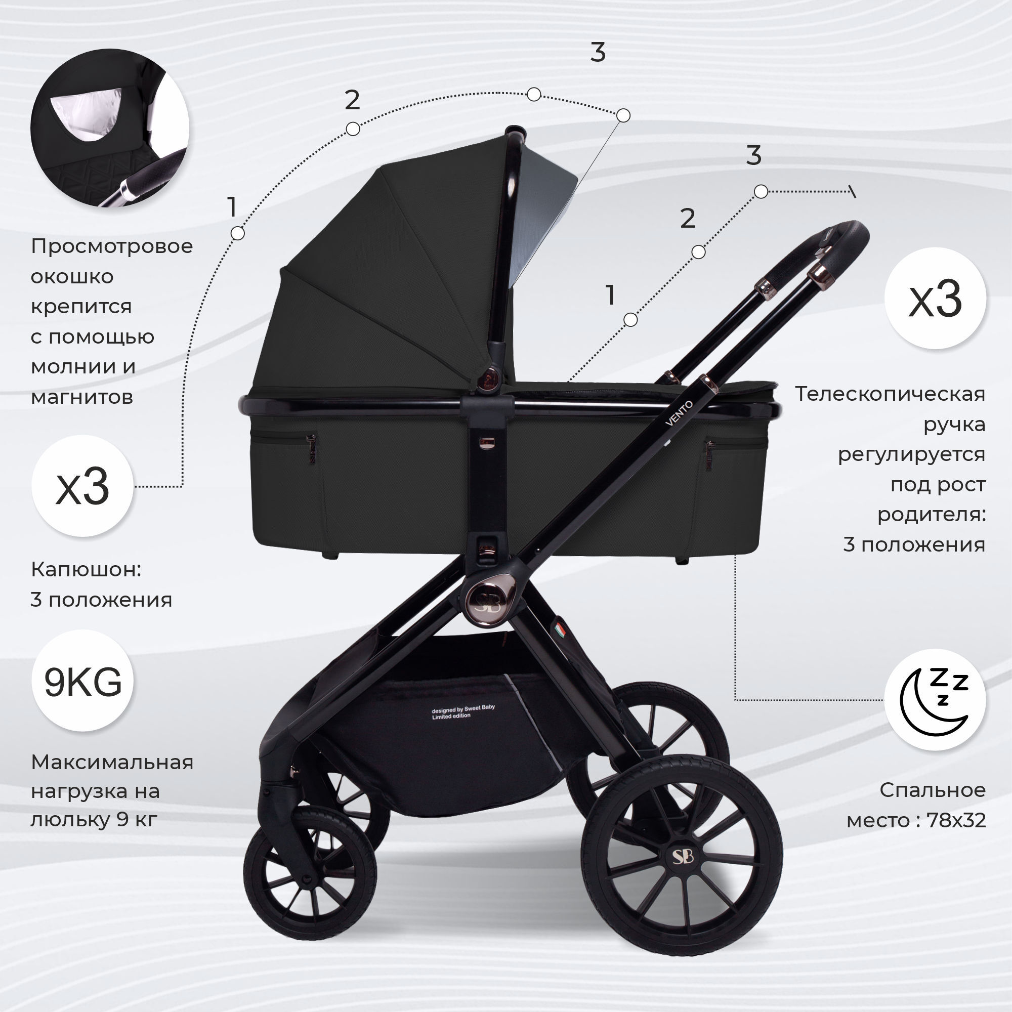 Коляска 3в1 Sweet Baby Vento с автокреслом 0+ - идеальный выбор для комфортных прогулок c вашим малышом! Коляска отлично подойдет для ребенка с рождения до 3 лет.