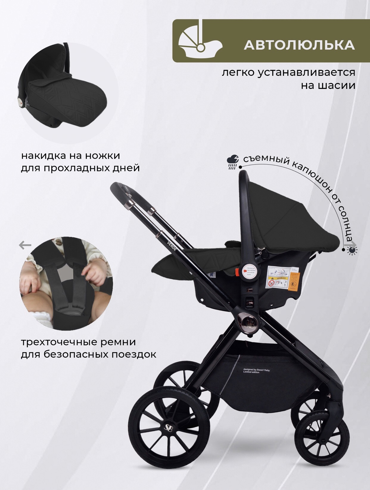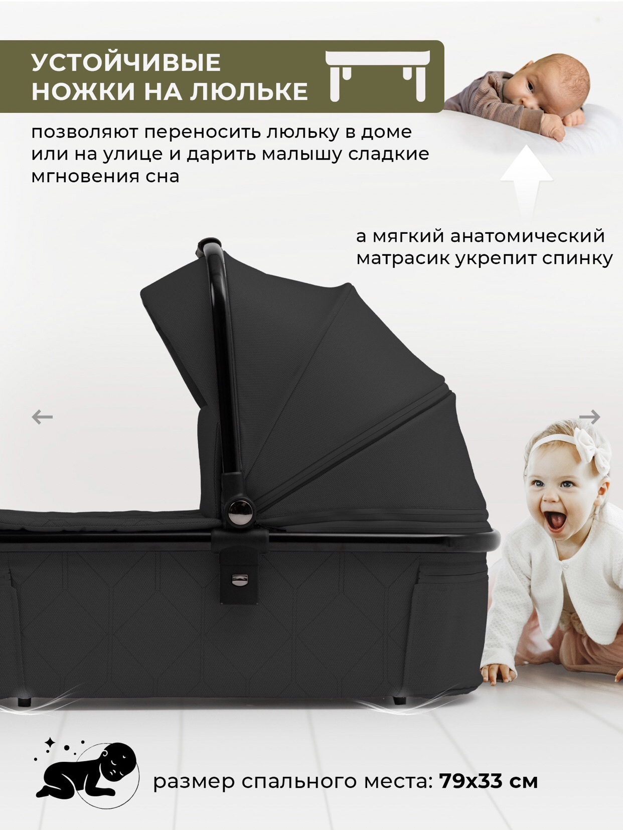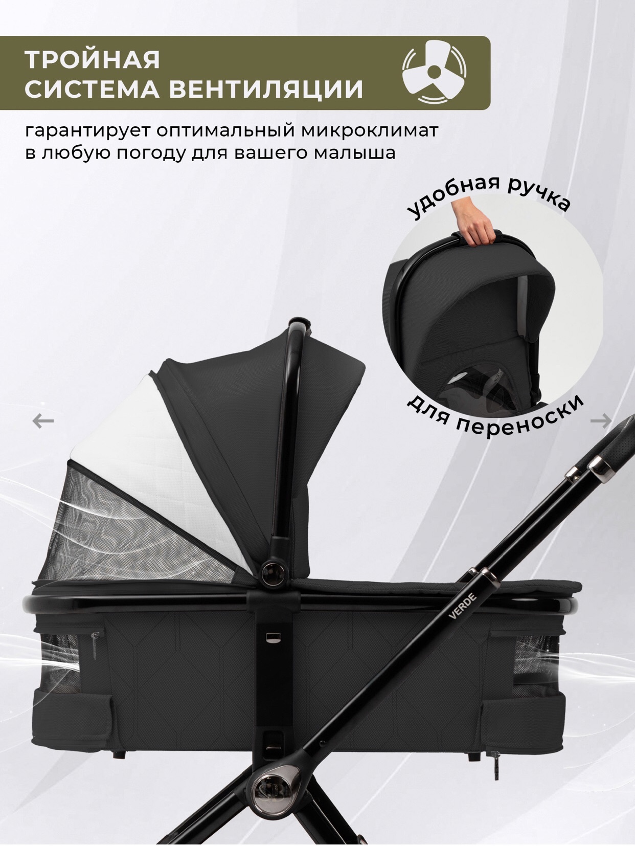 - Тройная вентиляция в люльке обеспечивает оптимальный микроклимат для малыша;