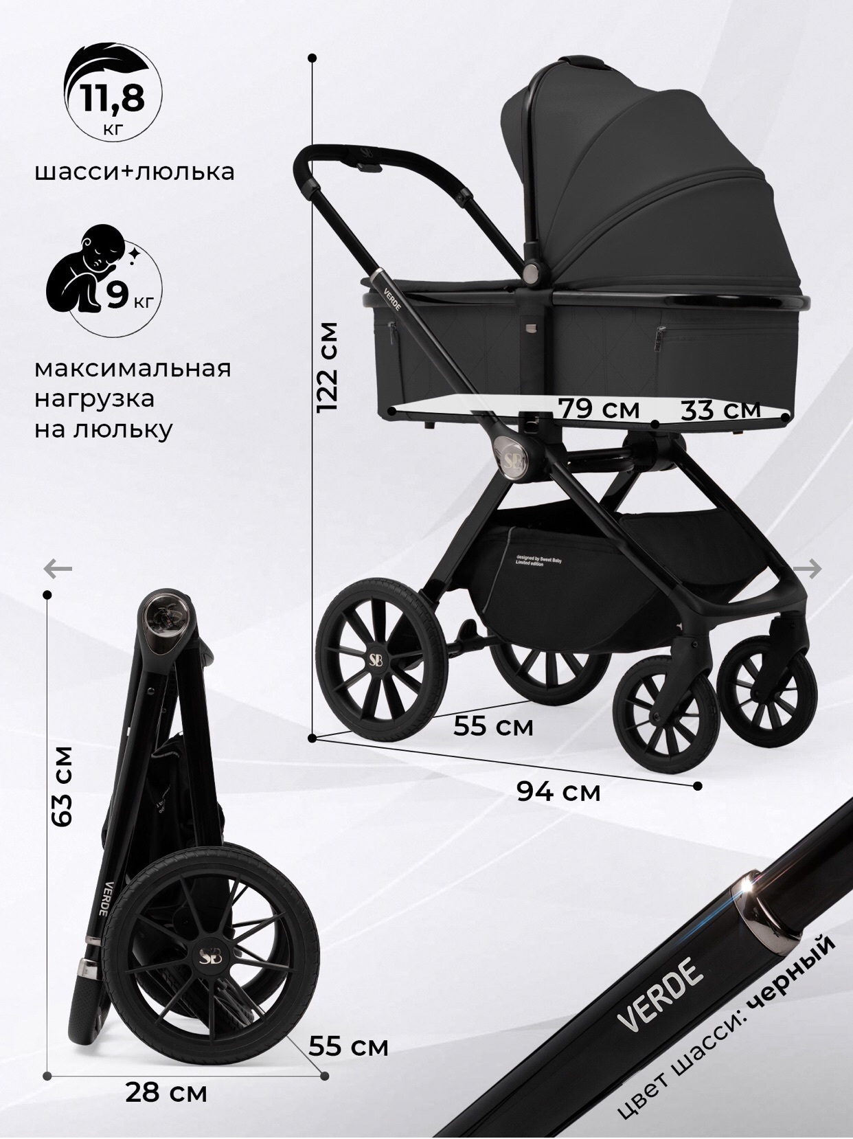 Вес коляски ( с люлькой): 11,8 кг