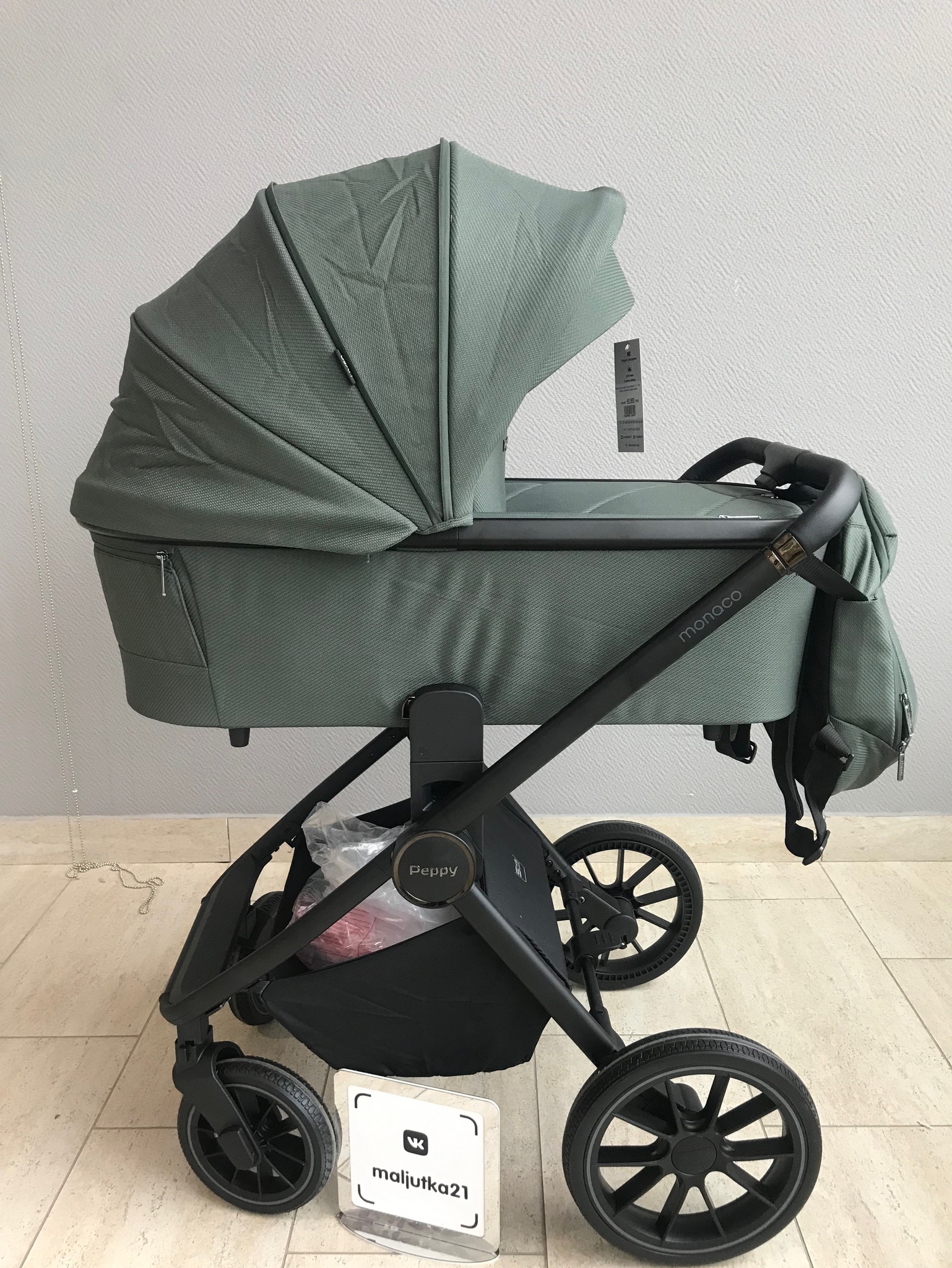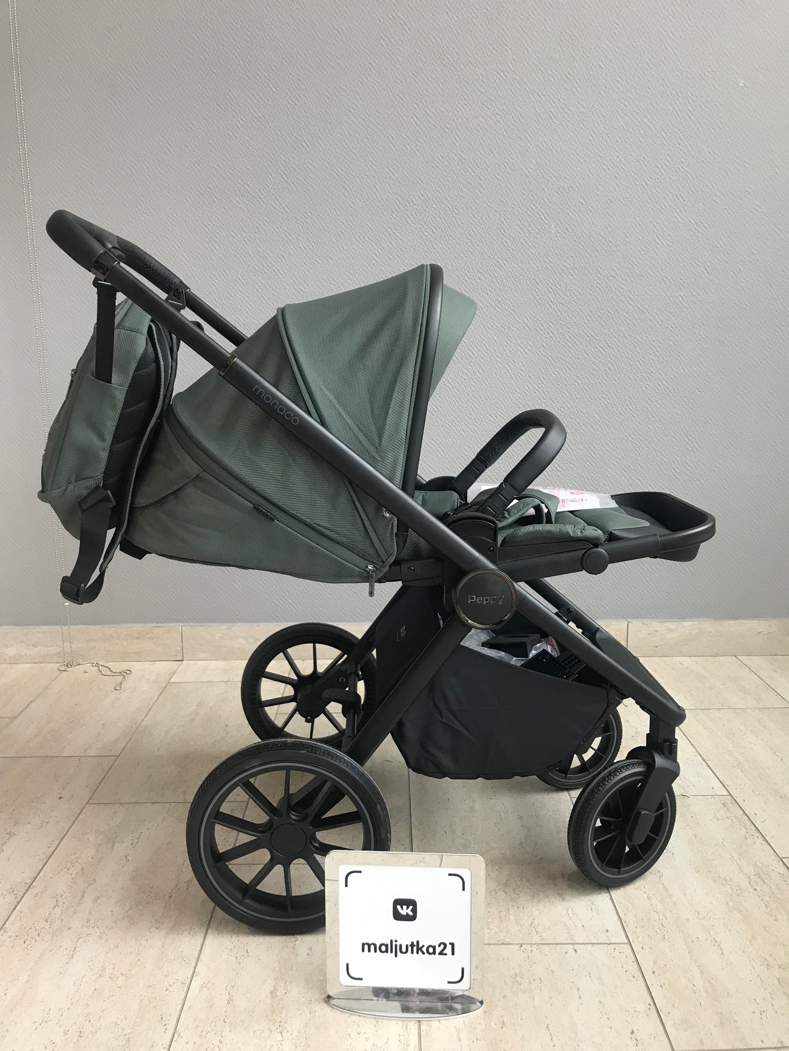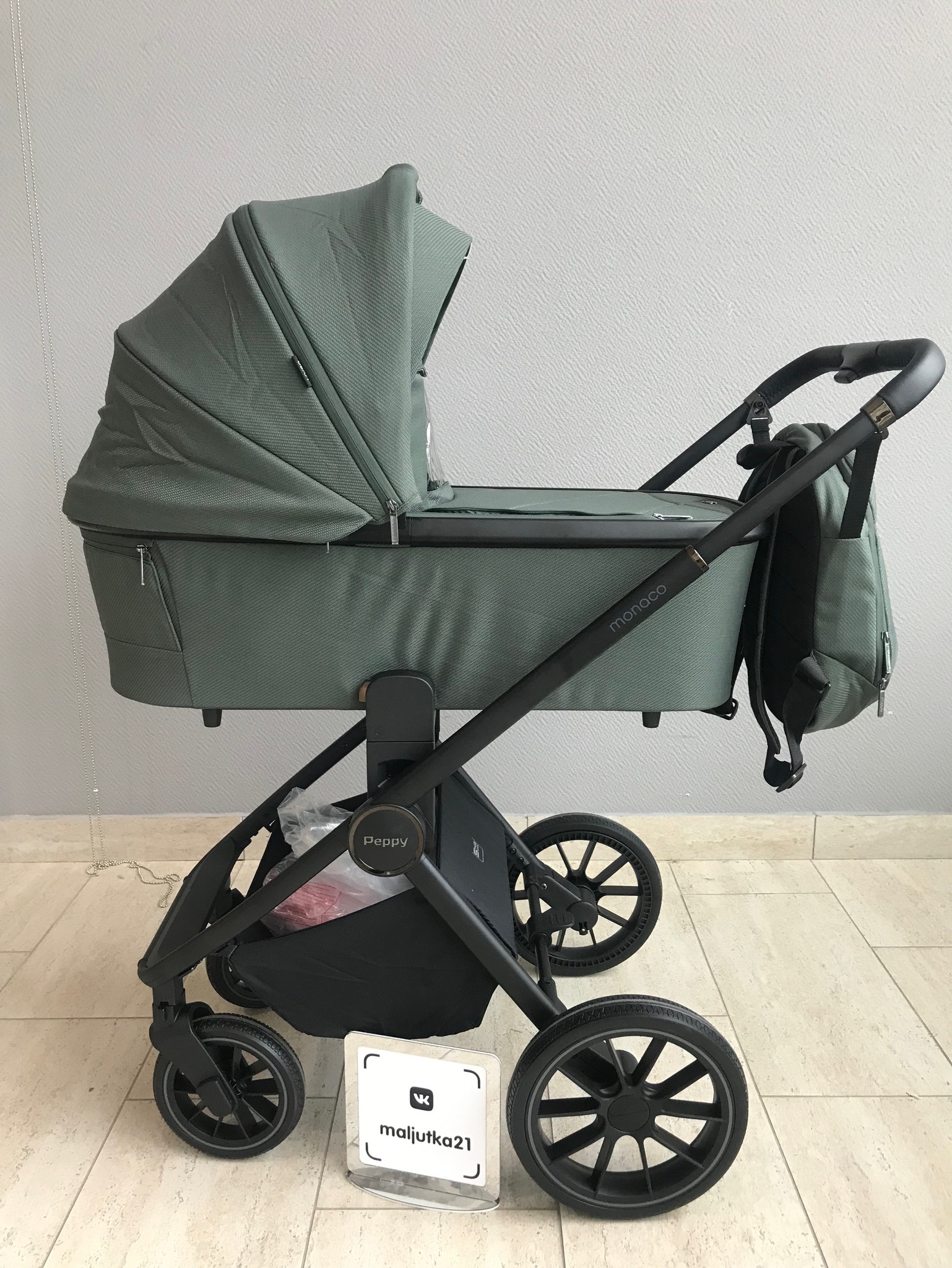 Коляска детская Peppy Monaco 2 в 1 Oliva Green (зеленый), рама черная