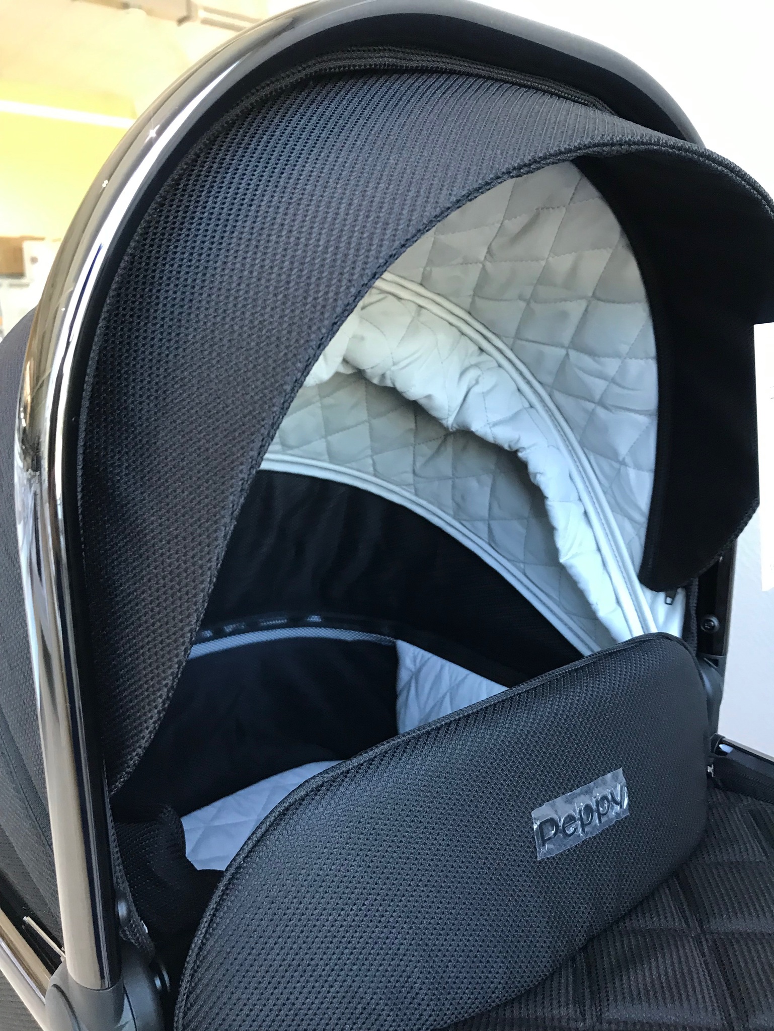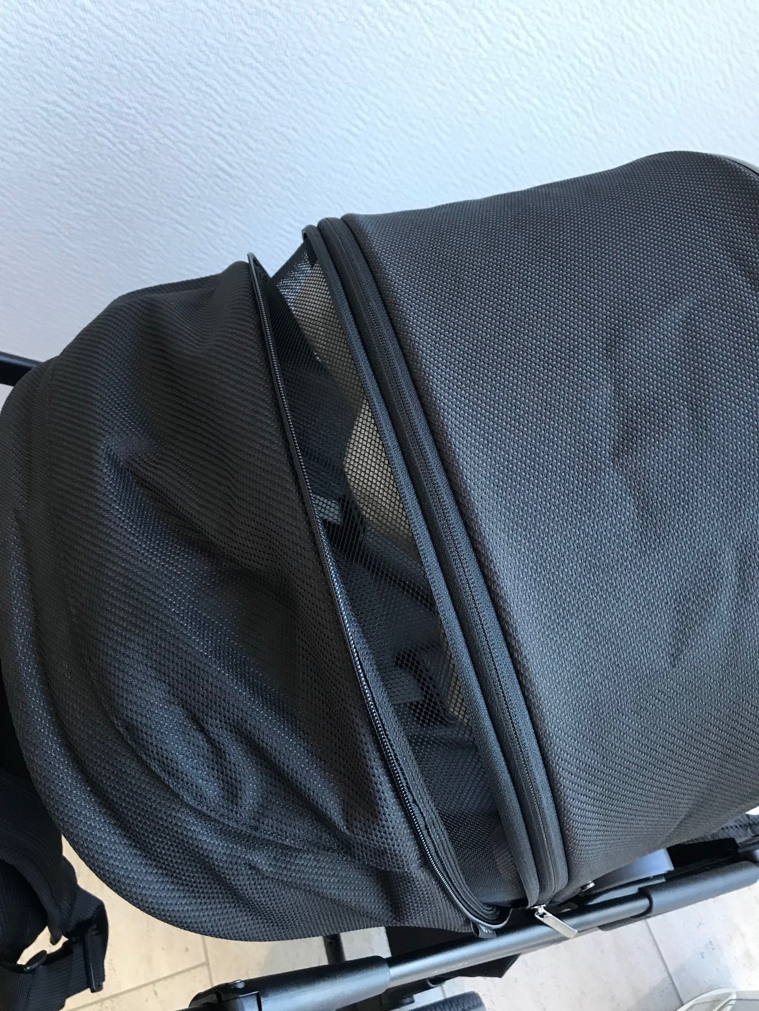 • Для лучшей циркуляции воздуха в жаркие летние дни в капоре люльки и у изголовья есть москитная сетка, спрятанная под молнией