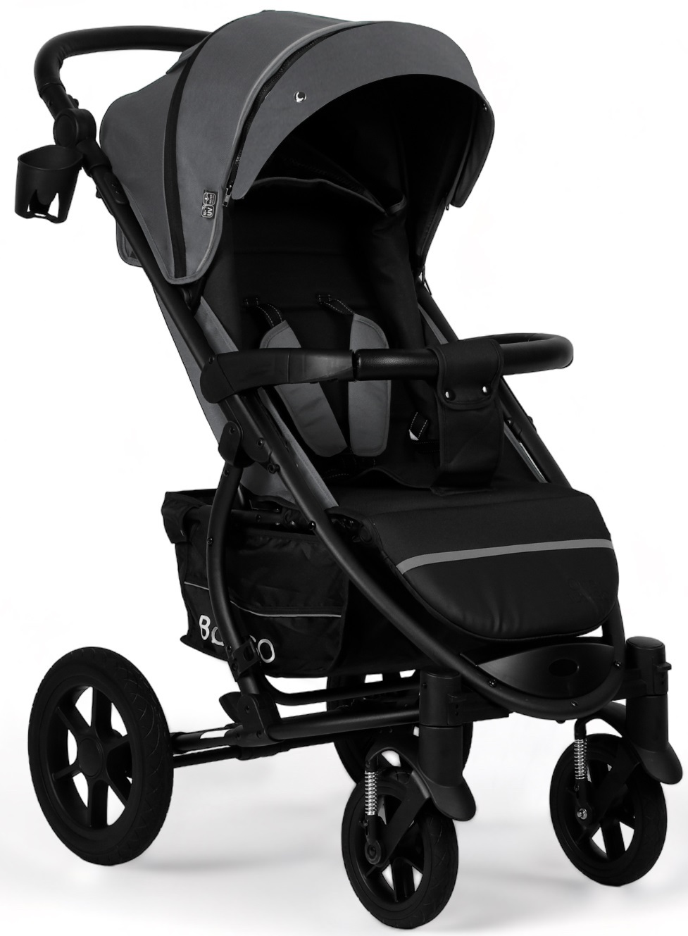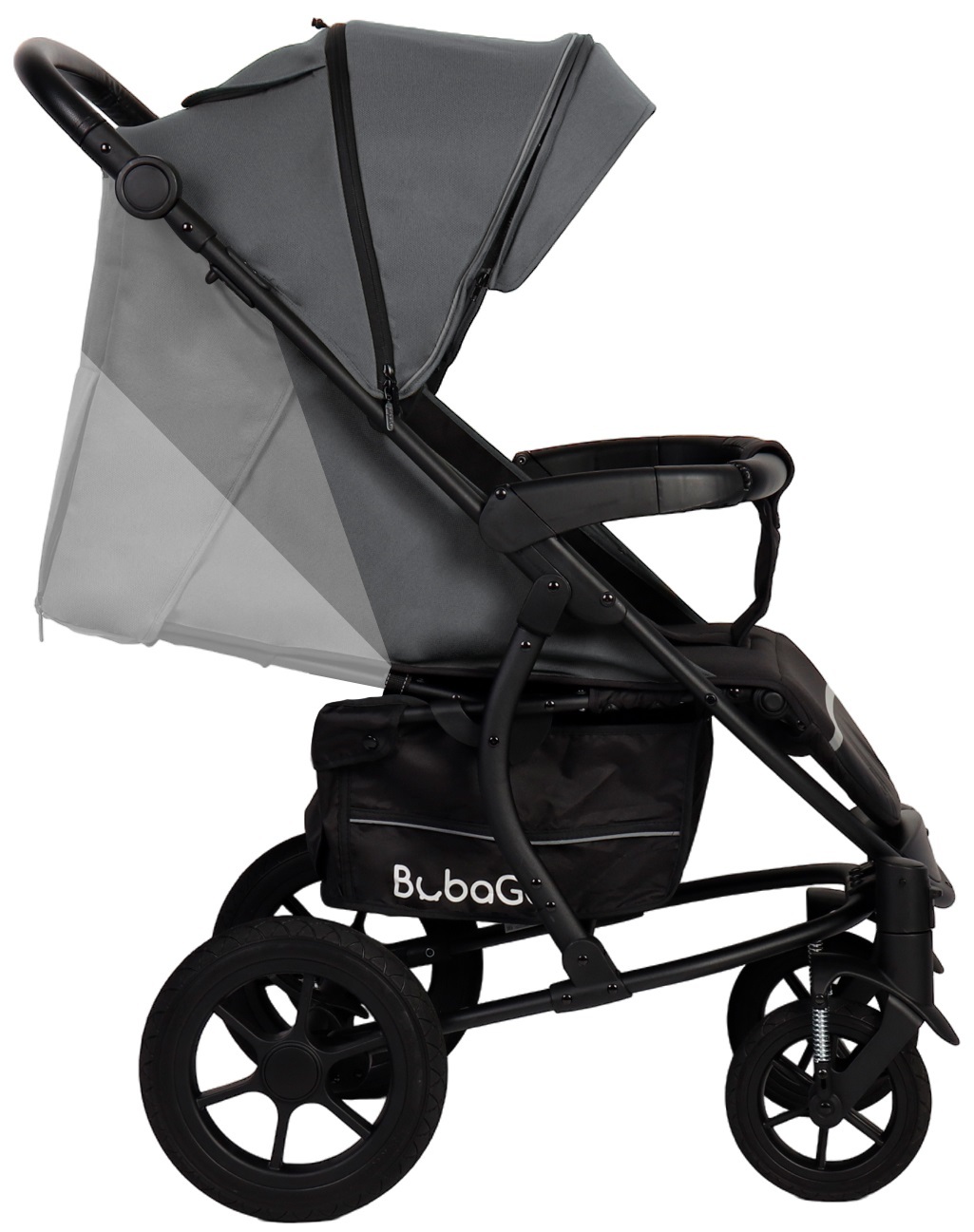 BubaGo Model One имеет прочную и устойчивую конструкцию. За счет поворотности ее передних колес, увеличивается ее манёвренность и легкость управления. Просторное сидение может легко превращаться в спальное место, для чего надо только использовать предусмотренные регулировки, меняющие положение спинки и подножки, вплоть до горизонтального.