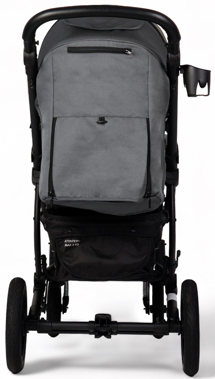 Ткань коляски имеет водоотталкивающий эффект, поэтому любая непогода ей будет не страшна. Для удобства родителей имеется подстаканник, порадует большая сумка для мамы и вместительность багажной корзины с доступом в нее при разложенной спинке, куда легко поместятся как вещи малыша, так и ваши покупки.
