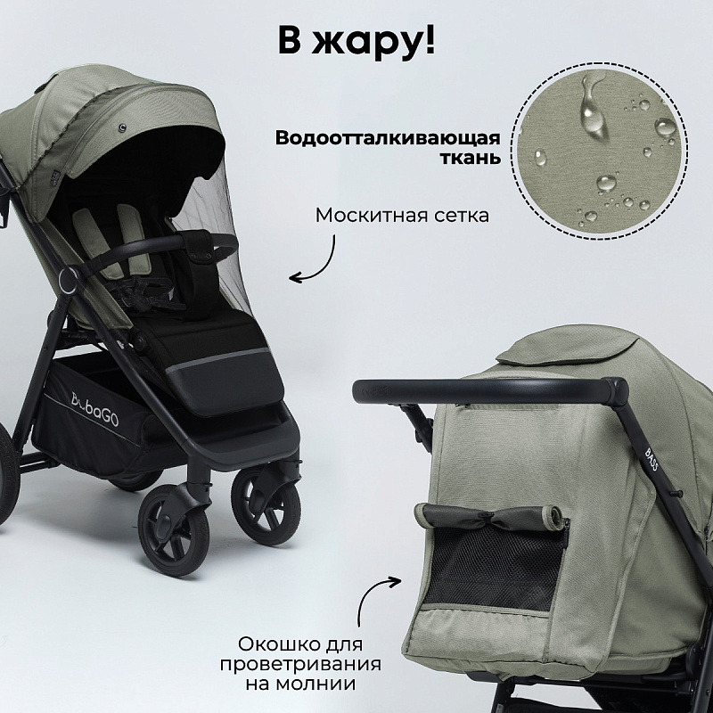 BubaGO BASS – это современная и стильная прогулочная коляска, разработанная с учетом всех потребностей молодых родителей, которые ценят комфорт и удобство во время выезда на прогулку.