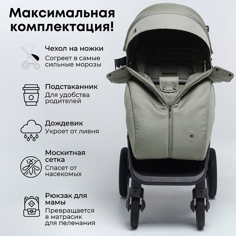 Кроме москитной сетки в комплекте есть дождевик, подстаканник, а также вместительная сумка-рюкзак, которая крепится на родительской ручке на удобных «ушках». Уже традиционная фишка BubaGO – рюкзачок превращается в плотный и удобный пеленальный матрасик!