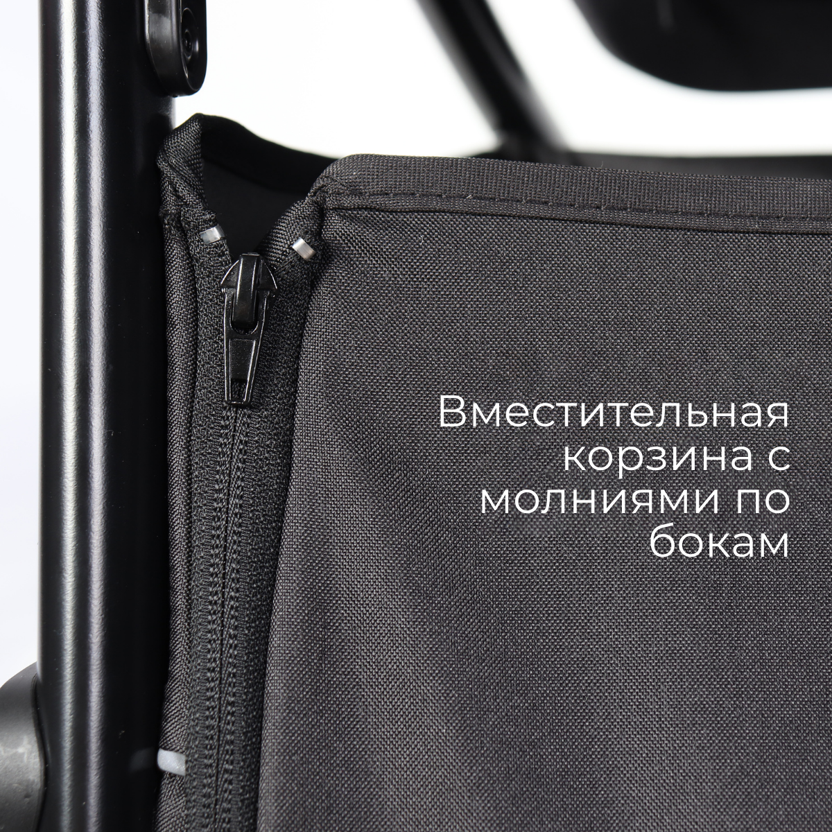 Здесь есть все: отстегиваемый ограничитель против сползания, пятиточечная система ремней с удобной регулировкой, световозвращающие полосы на капюшоне, подножке, корзине, чехле на ножки и даже на ремнях безопасности, съемный откидной поворотный бампер. Ну и, конечно же, ножной тормоз на задней колесной базе.