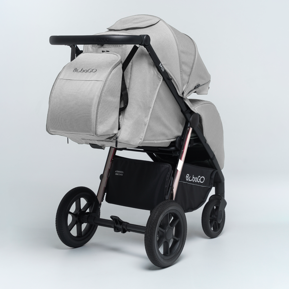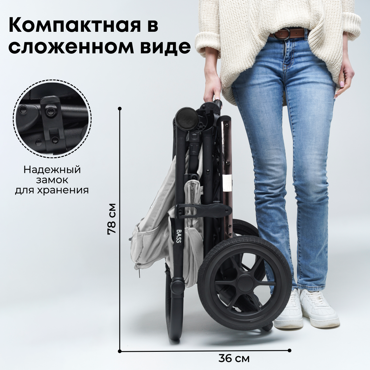 Несмотря на внушительные габариты, прогулочная коляска BubaGO BASS Chrome легко и компактно складывается одной рукой тканью внутрь по принципу «книжка», для удобства хранения и переноски имеет транспортировочный замок.