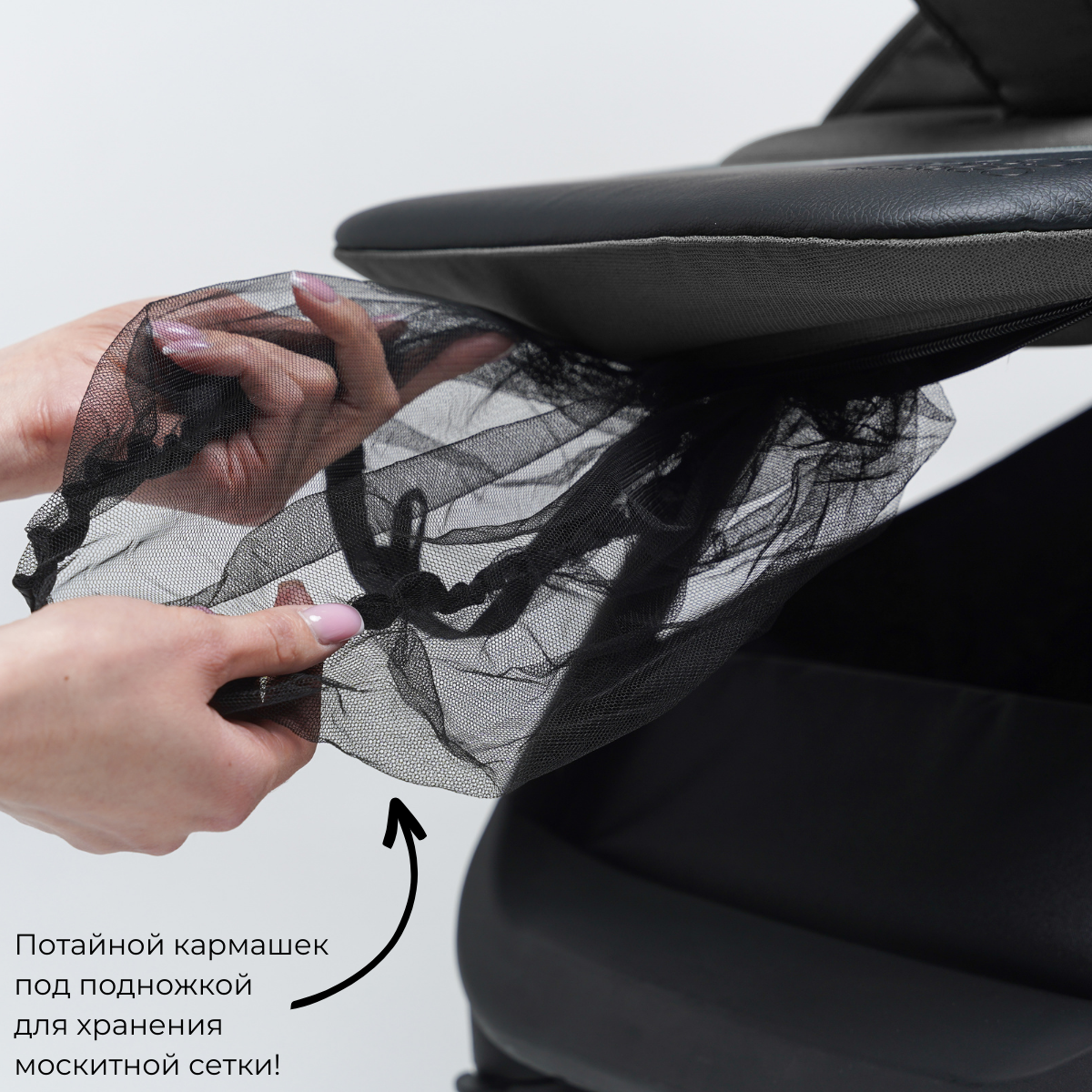 За комфорт в летнюю жару отвечает проветриваемая спинка с москитной сеткой и защитой от выпадения малыша, плюс москитная сетка для самой коляски.