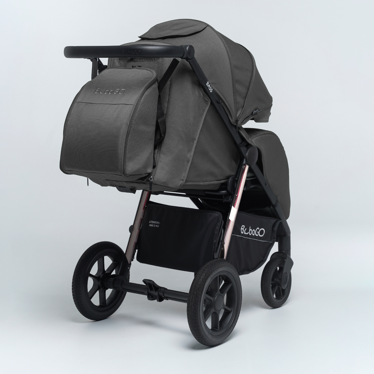 Несмотря на внушительные габариты, прогулочная коляска BubaGO BASS Chrome легко и компактно складывается одной рукой тканью внутрь по принципу «книжка», для удобства хранения и переноски имеет транспортировочный замок.