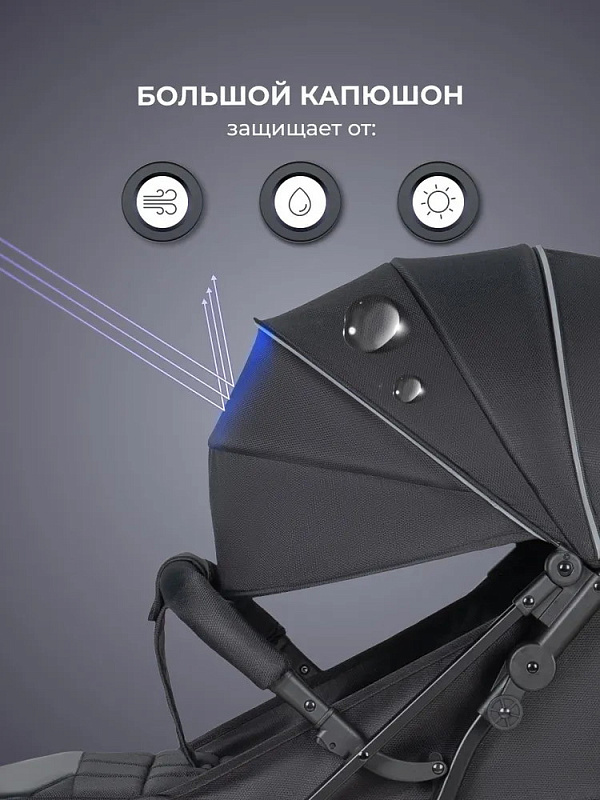 Капюшон может раскрываться до самых ножек малыша, а теплый полог оберегает ребенка от непогоды. Для наблюдения за крохой есть смотровое окошко с клапаном. Секция для проветривания в изголовье, способствует охлаждению воздуха и предотвращать тепловой удар.