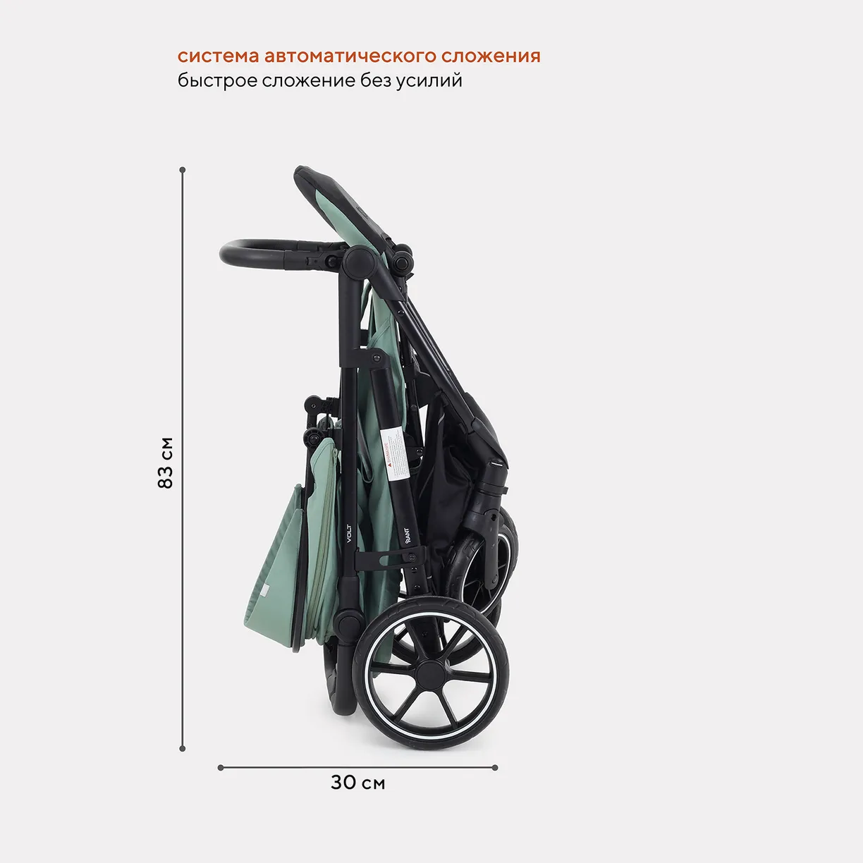 - сложенная коляска устойчиво стоит в вертикальном положении, что не дает ей испачкаться и обеспечивает комфортное хранение