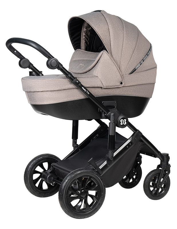 Новинка 2024, коляска для новорожденных Molly Trio в новых цветах, выполненных в экокоже! В обновленной модели вместительный рюкзак, все 4 колеса надувные, добавлены светоотражающие элементы и москитная сетка.