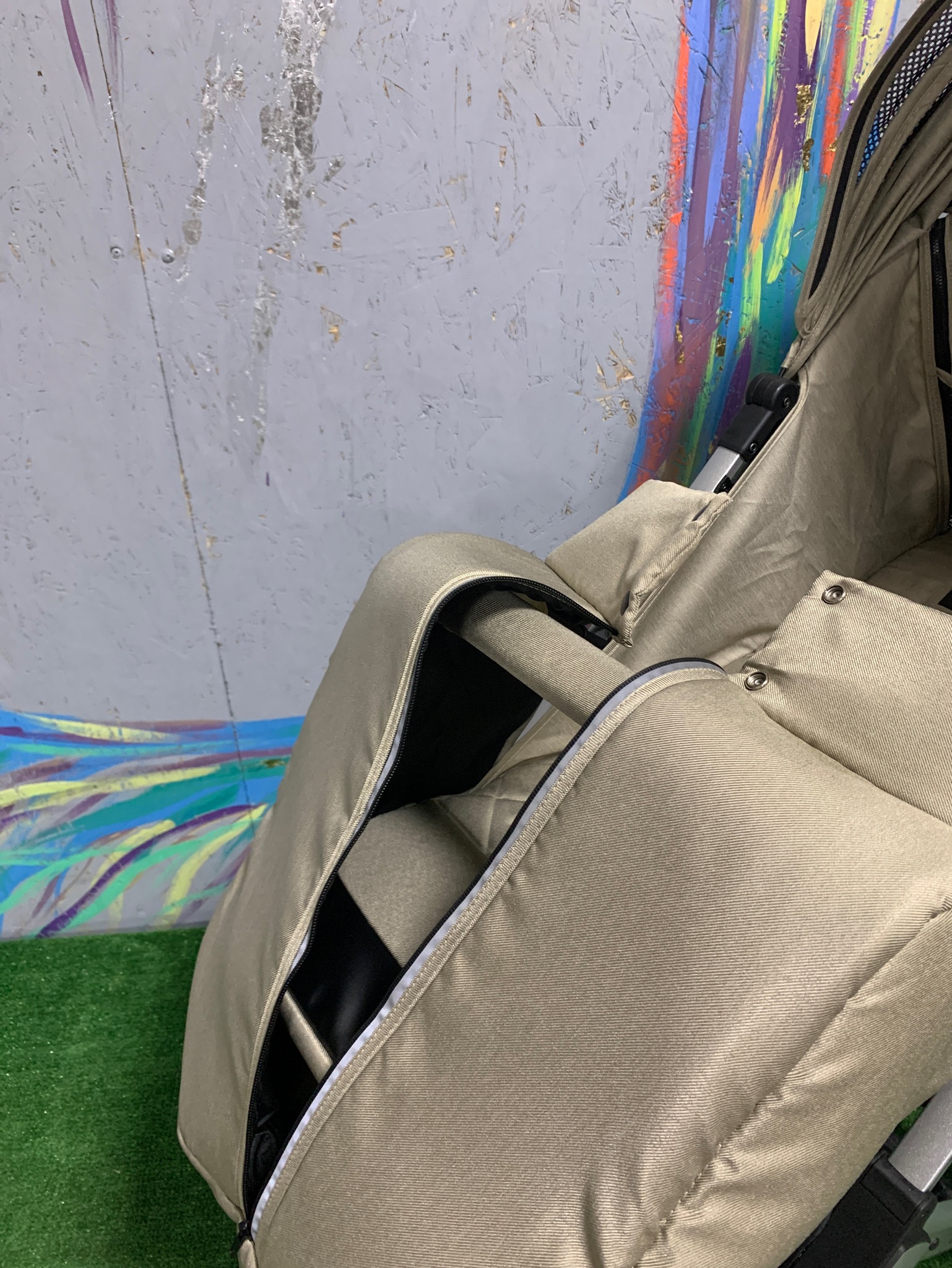 Колеса EVA и мощные пружинные амортизаторы обеспечивают плавность и мягкость в движении, маневренность в узких пространствах достигается за счет возможности вращения передних колес на 360°.Важно отметить, что все колеса коляски съемные, их без труда можно будет помыть после прогулки.