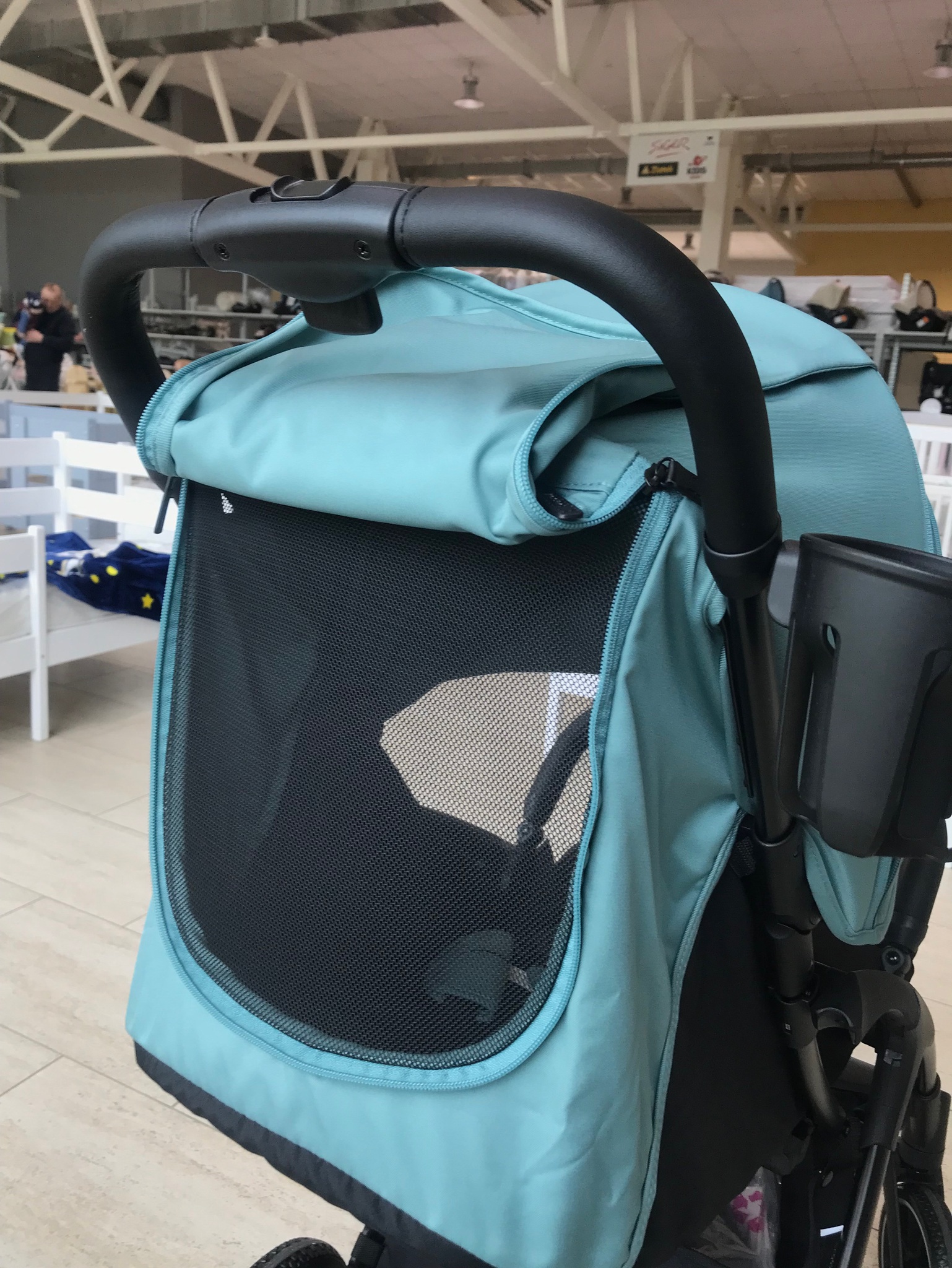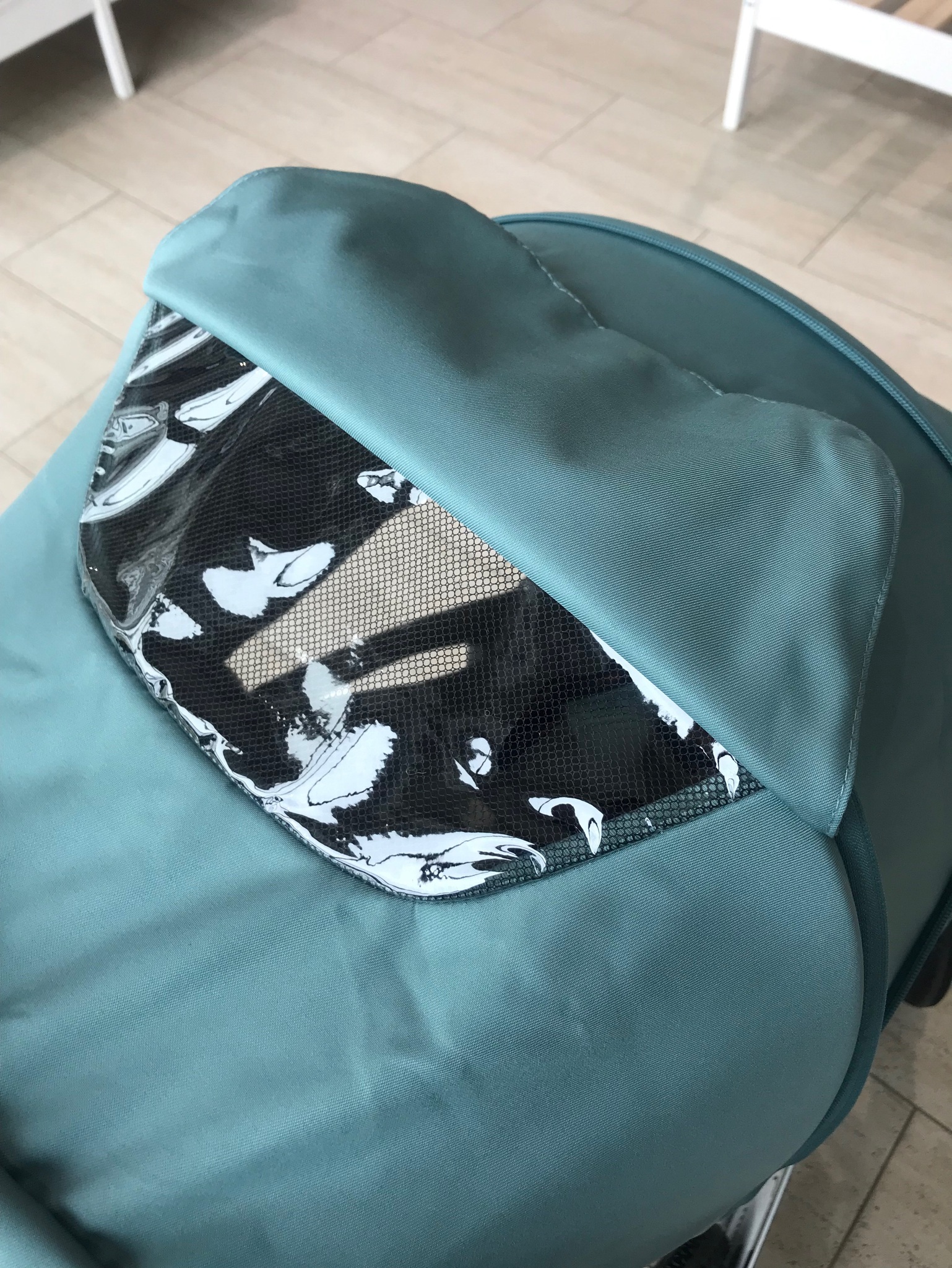 Большая проветриваемая секция на капоре – с москитной сеткой, и кармашком для мелочей;