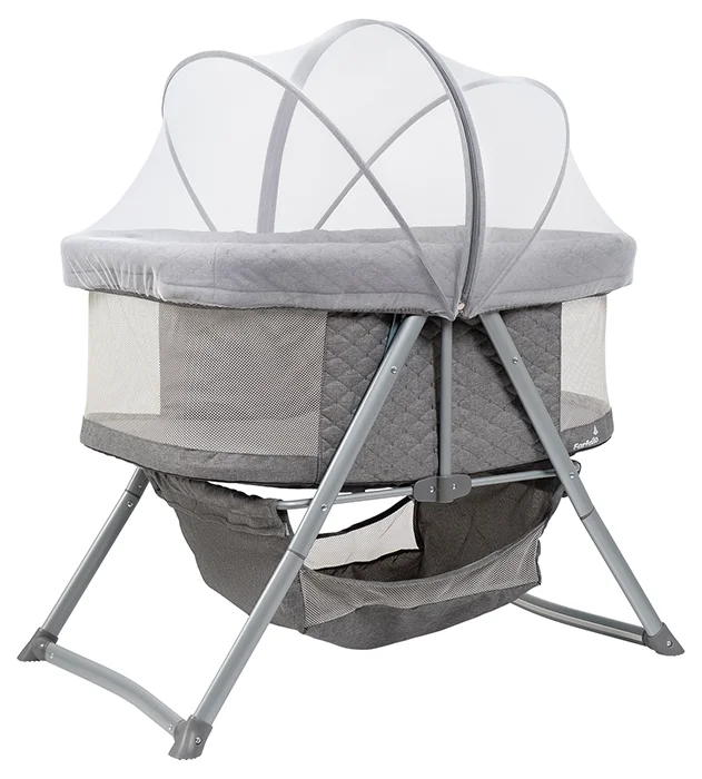 Удобная москитная сетка в комплекте защитит кроху от насекомых — особенно актуально, если вы любите проветривать комнату или отдыхаете на даче. А вместительная нижняя корзина — практичное решение для хранения пелёнок или игрушек. Всё необходимое будет под рукой.