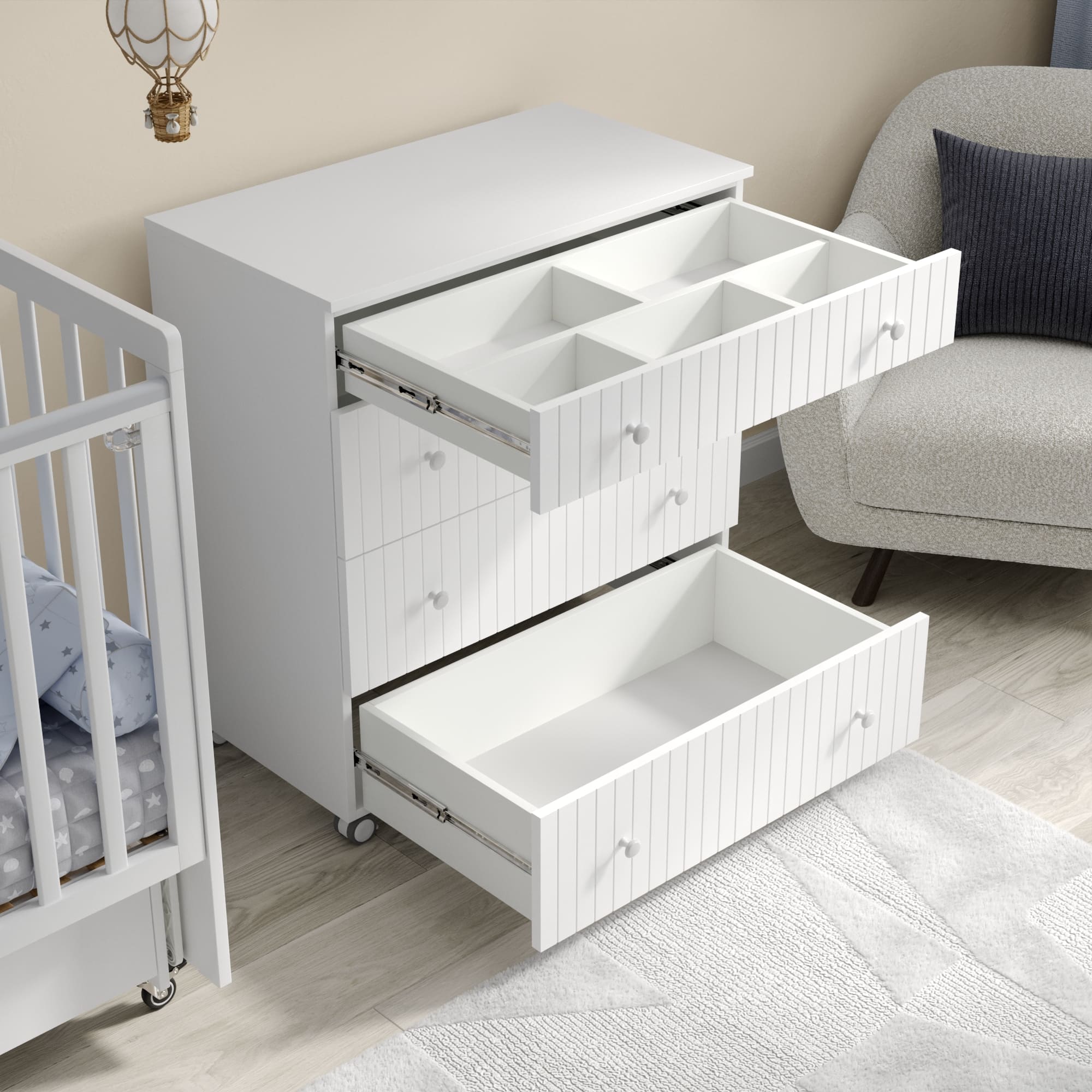 Комод Classic - это функциональный комод, созданный в скандинавском стиле с учетом эргономики и трендов в индустрии детских товаров.