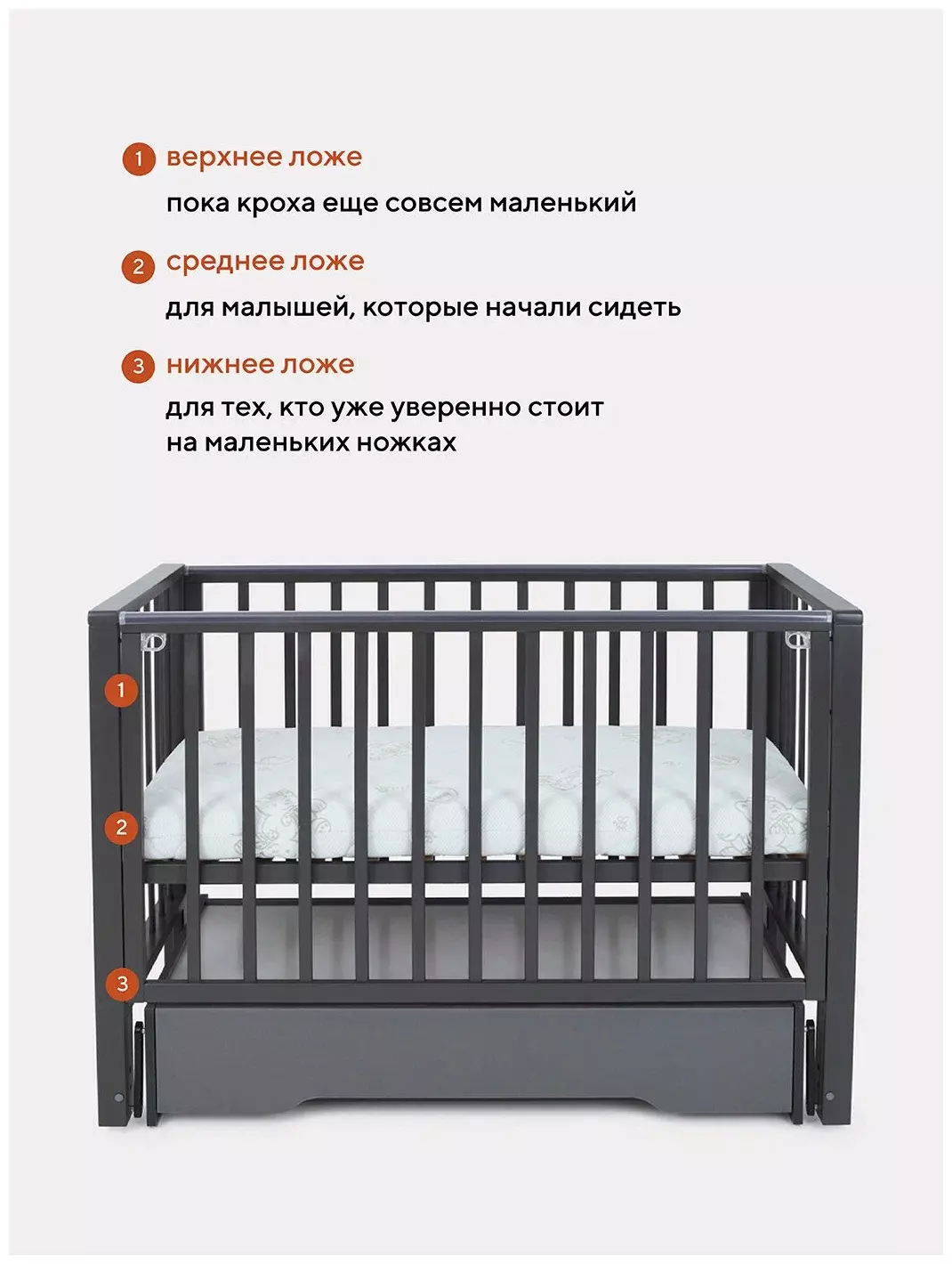 Многофункциональная минималистичная кроватка будет радовать вас на протяжении всего периода эксплуатации