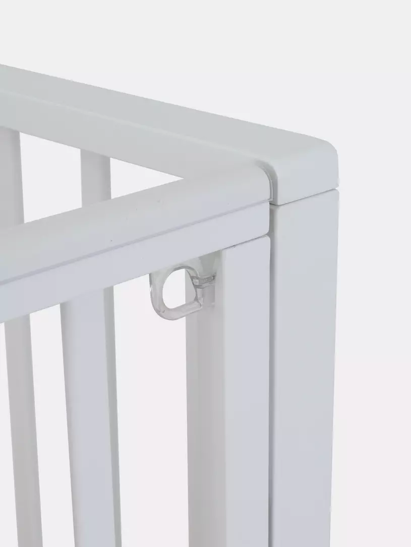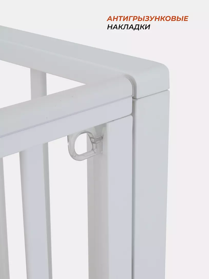 • верхние планки боковых стенок дополнены силиконовыми накладками, чтобы малыш не повредил десны (во время прорезывания зубов) и поверхность кроватки
