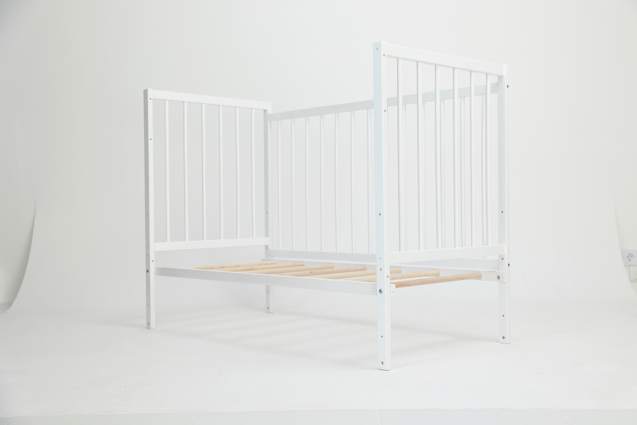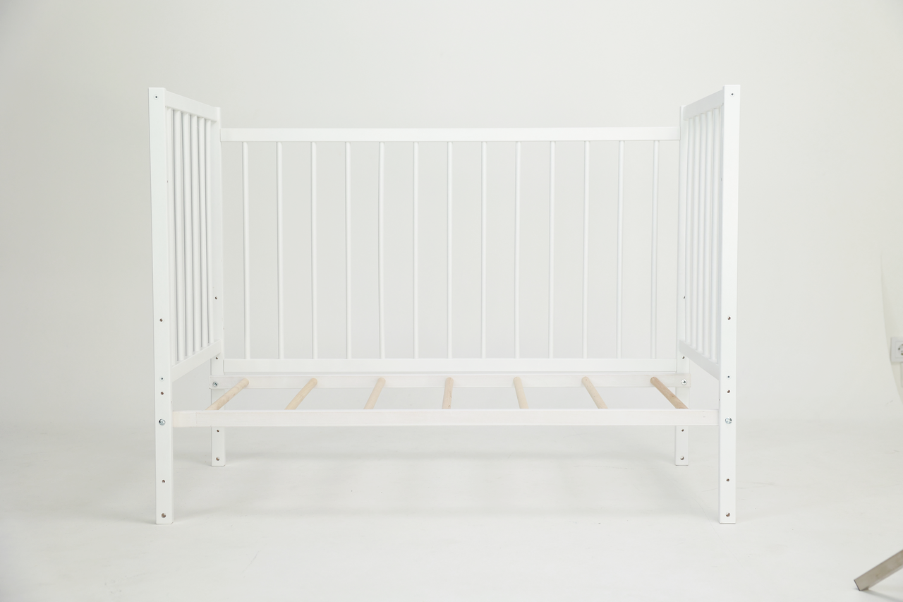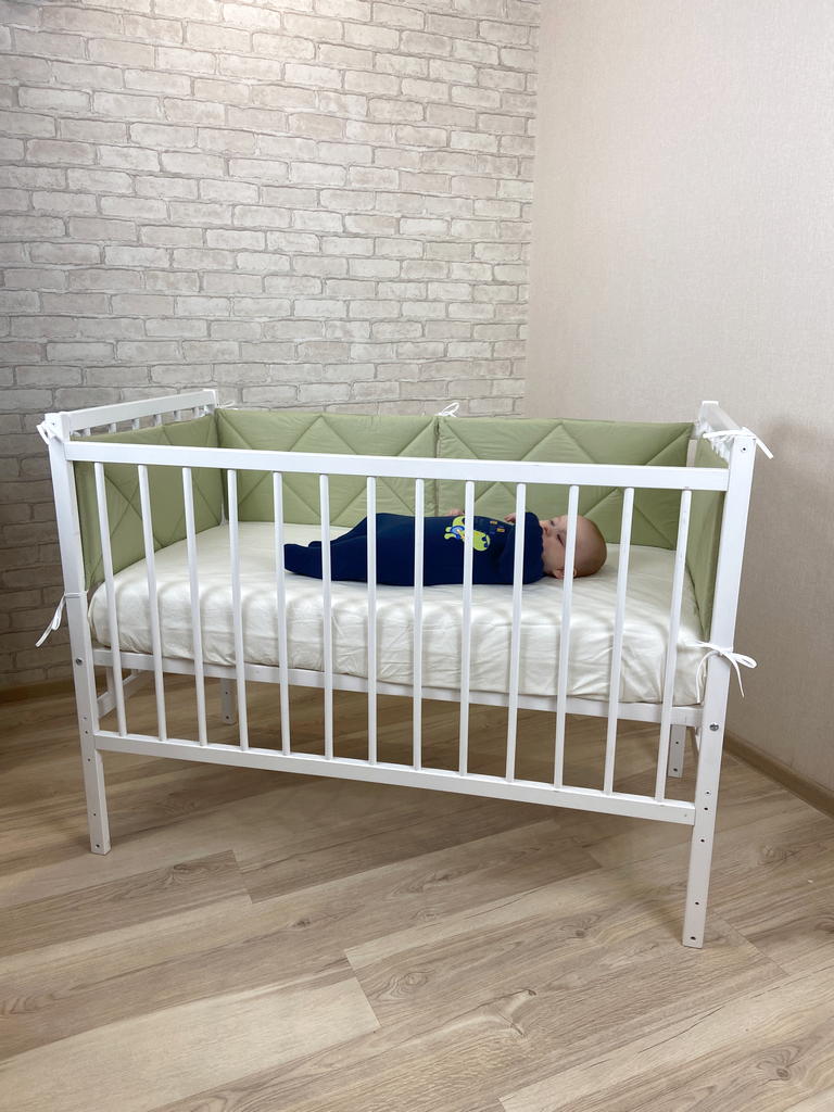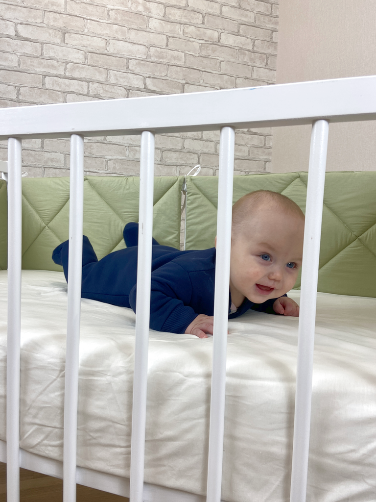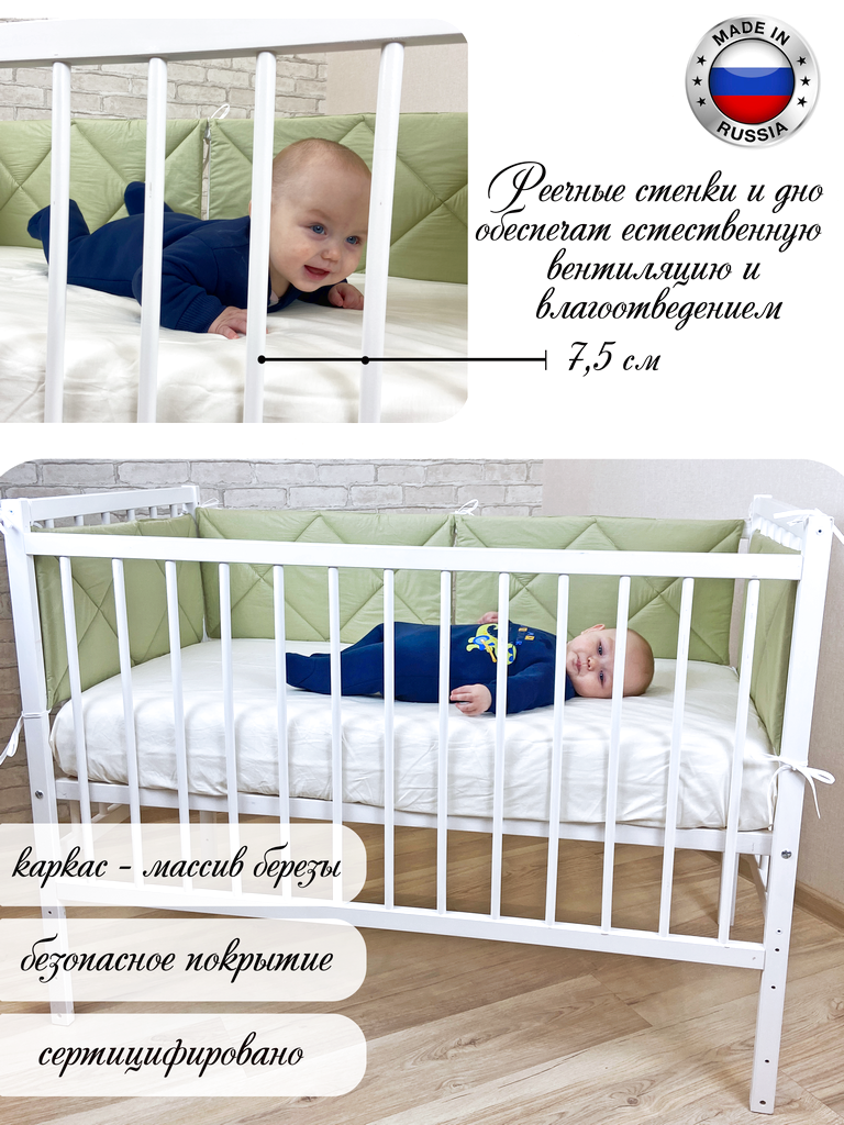 - Модель оборудована четырьмя колесиками со специальным полимерным слоем, не позволяющим портить напольное покрытие. Благодаря им кроватку легко перемещать.