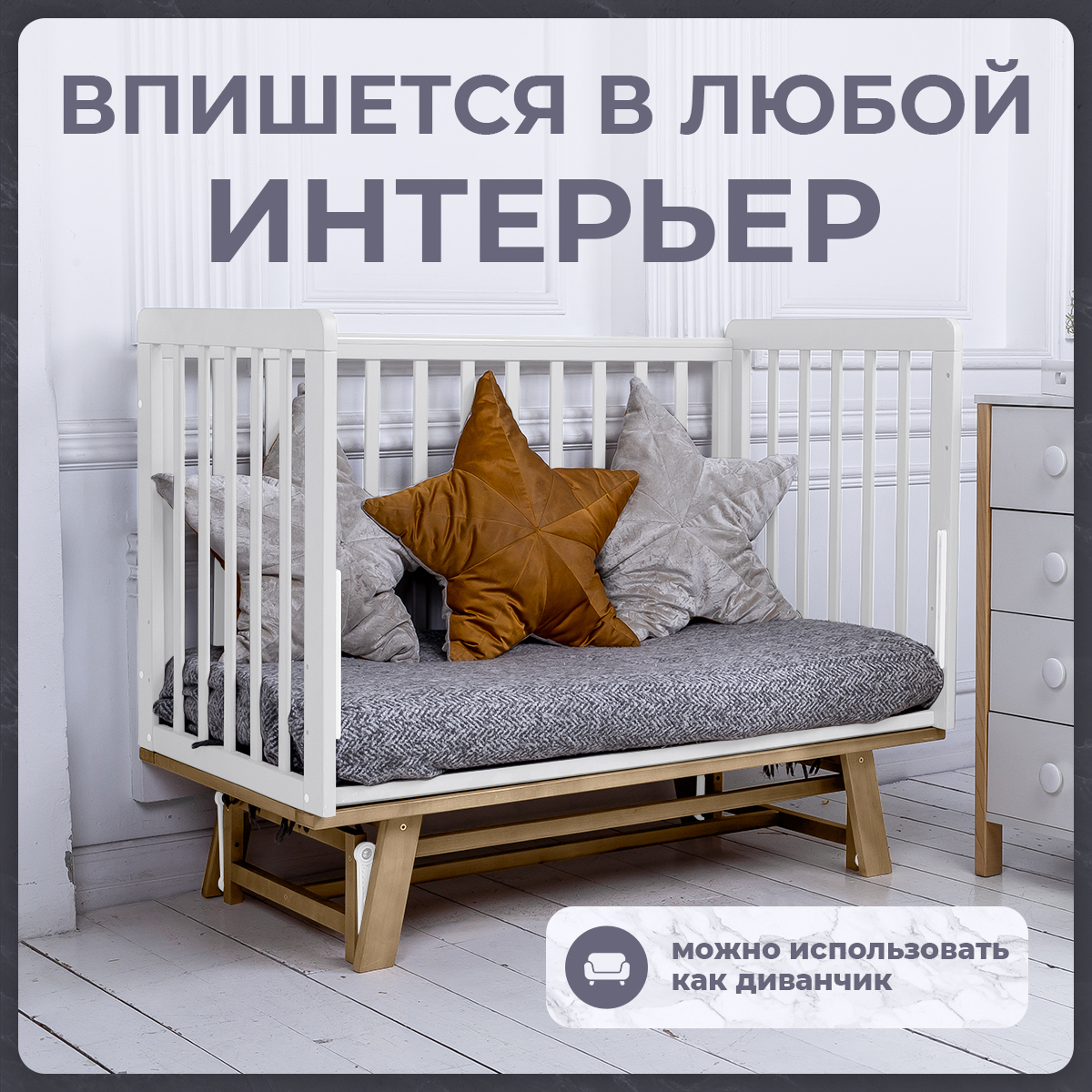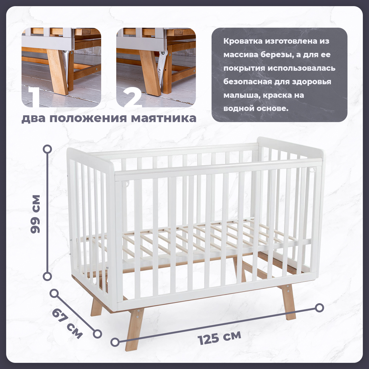 Детская кроватка для новорожденных с маятником от 0 до 3 лет Sweet Baby Palladio - это классическая деревянная кровать в современном европейском стиле. Изготовлена из древесины березы, прочного и долговечного материала. Кроватки для новорожденных Sweet Baby обрабатываются нетоксичными лаками и красками, итальянского производства. Они являются абсолютно безвредными для ребенка и используются для мебели в детских комнатах. Итальянский бренд Sweet Baby позаботился о комфортном сне вашего малыша благодаря плавному механизму качания продольного маятника, который подойдет для небольших детских комнат. Кроватка оснащена специальными фиксаторами, которые приводят маятник в состояние покоя. Стенки и дно кроватки - реечные, что создает естественную вентиляцию матраса и спального места и способствует отведению влаги. Благодаря такой конструкции кроватки малыш всегда в поле зрения мамы. Рейки и ламели кроватки изготовлены из натуральной березы.