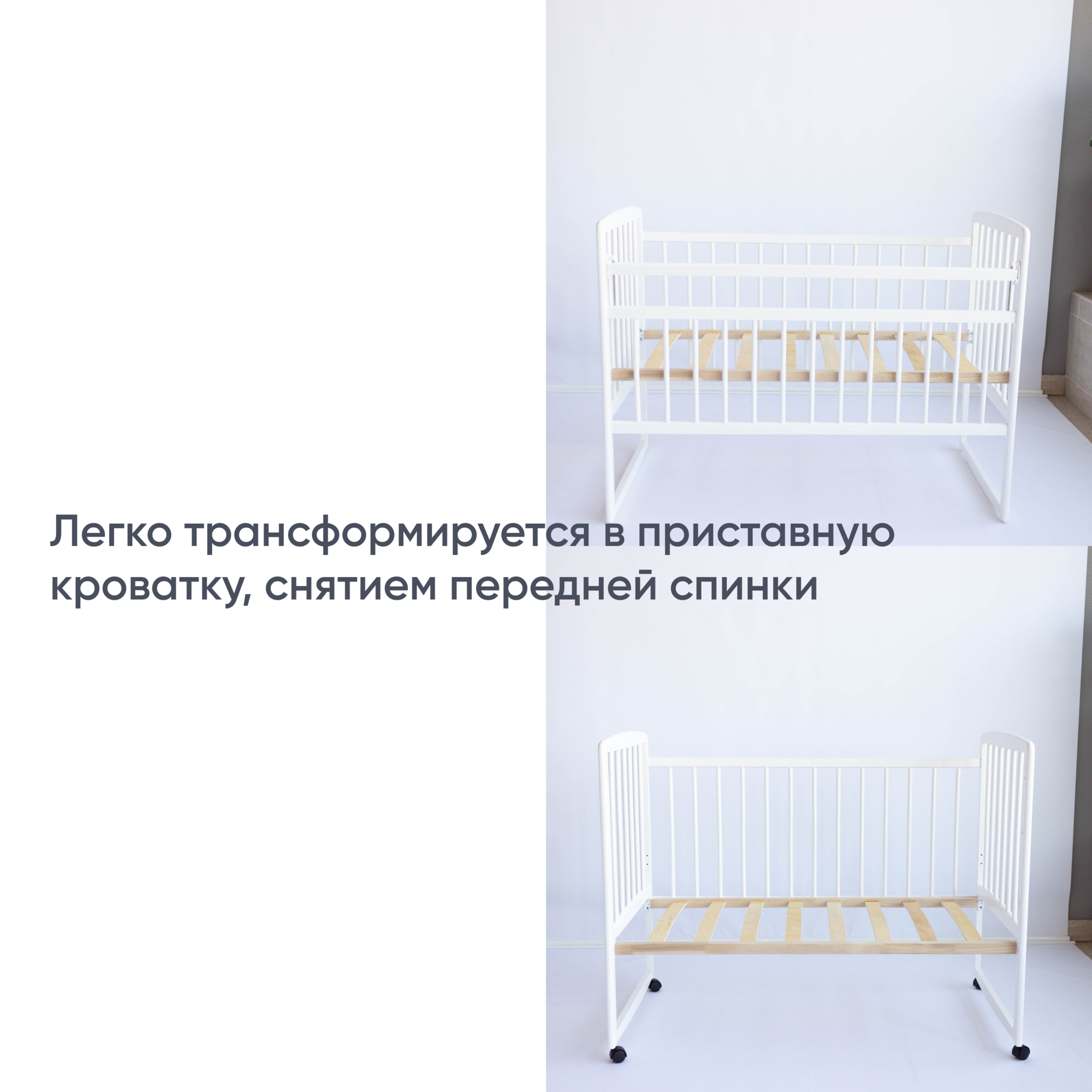 • Если нужно, Массив Малютка можно установить на полозья для качания или колесики, которые идут в комплекте с кроваткой