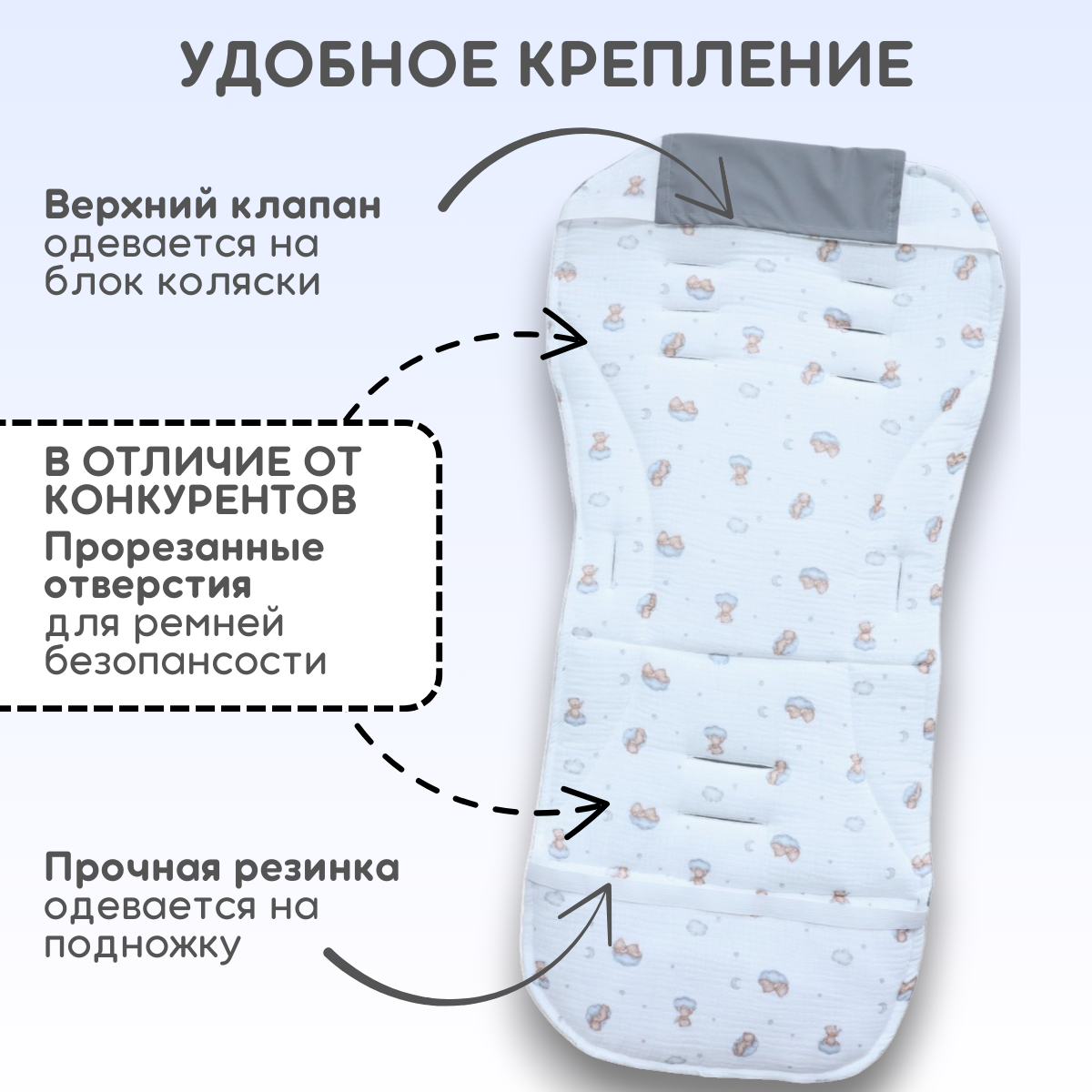 Матрасик в коляску модель КМ1 BG 169-2 серый мишки