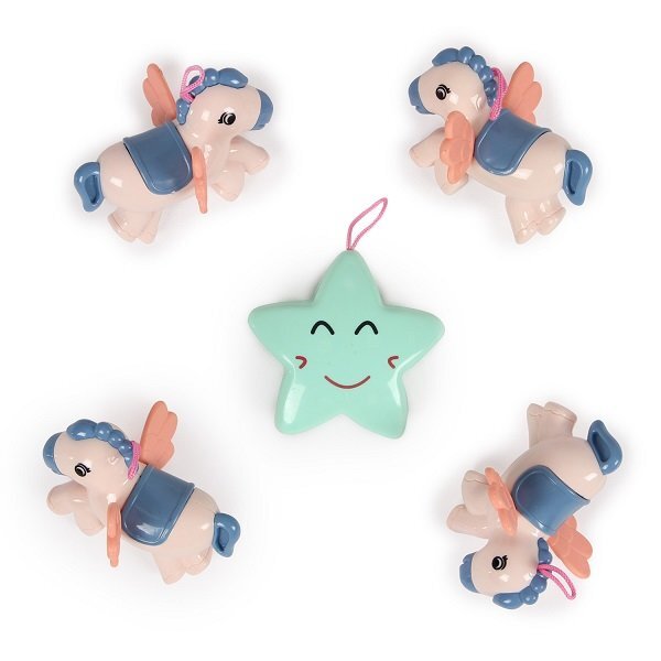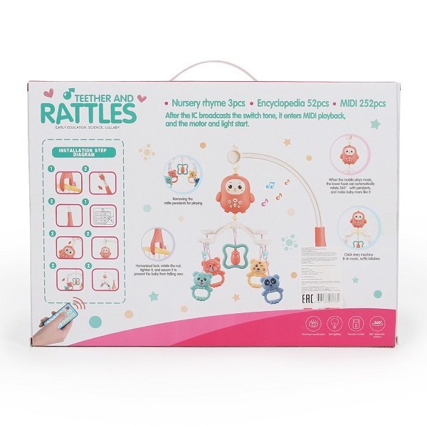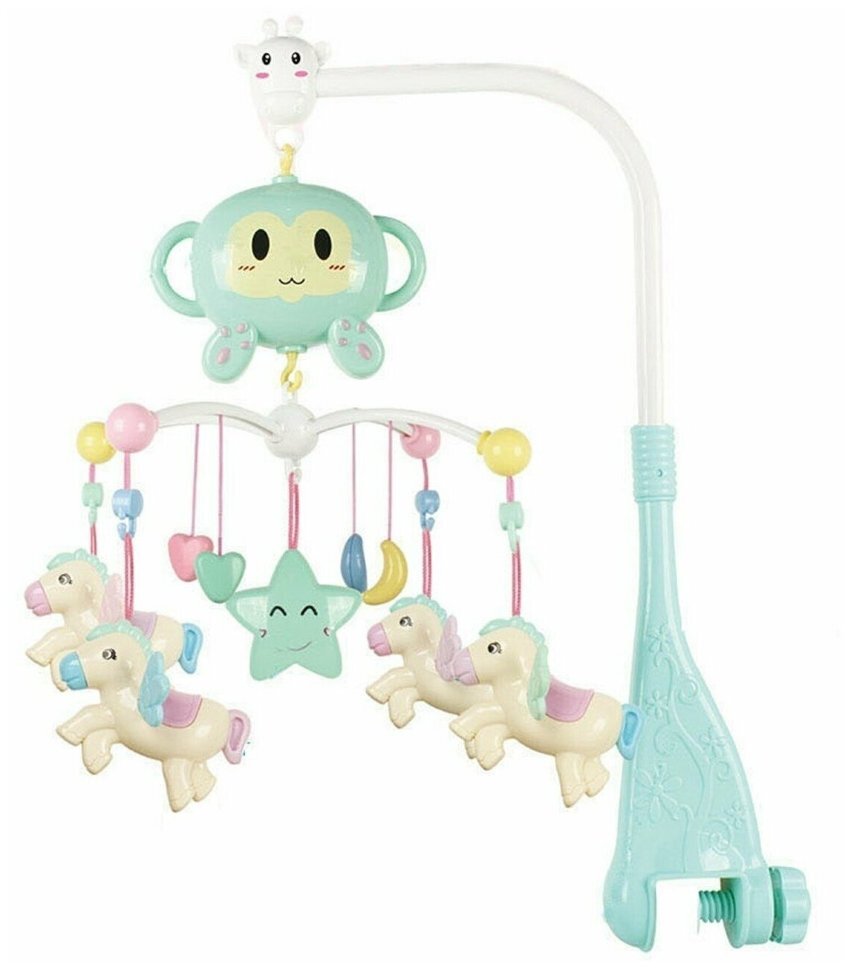 Мобиль ПОНИ от Konig Kids работает от 2-х батареек АА (в комплект не входят). На кроватку крепится при помощи фиксатора-винта.