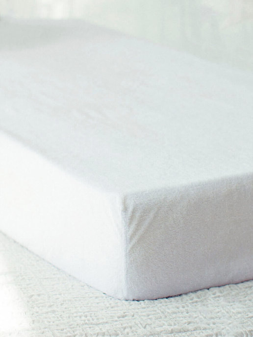 Наматрасник на резинке из махрового полотна с ПВХ покрытием внутренней стороны легко одевается на матрас, не образует складок.