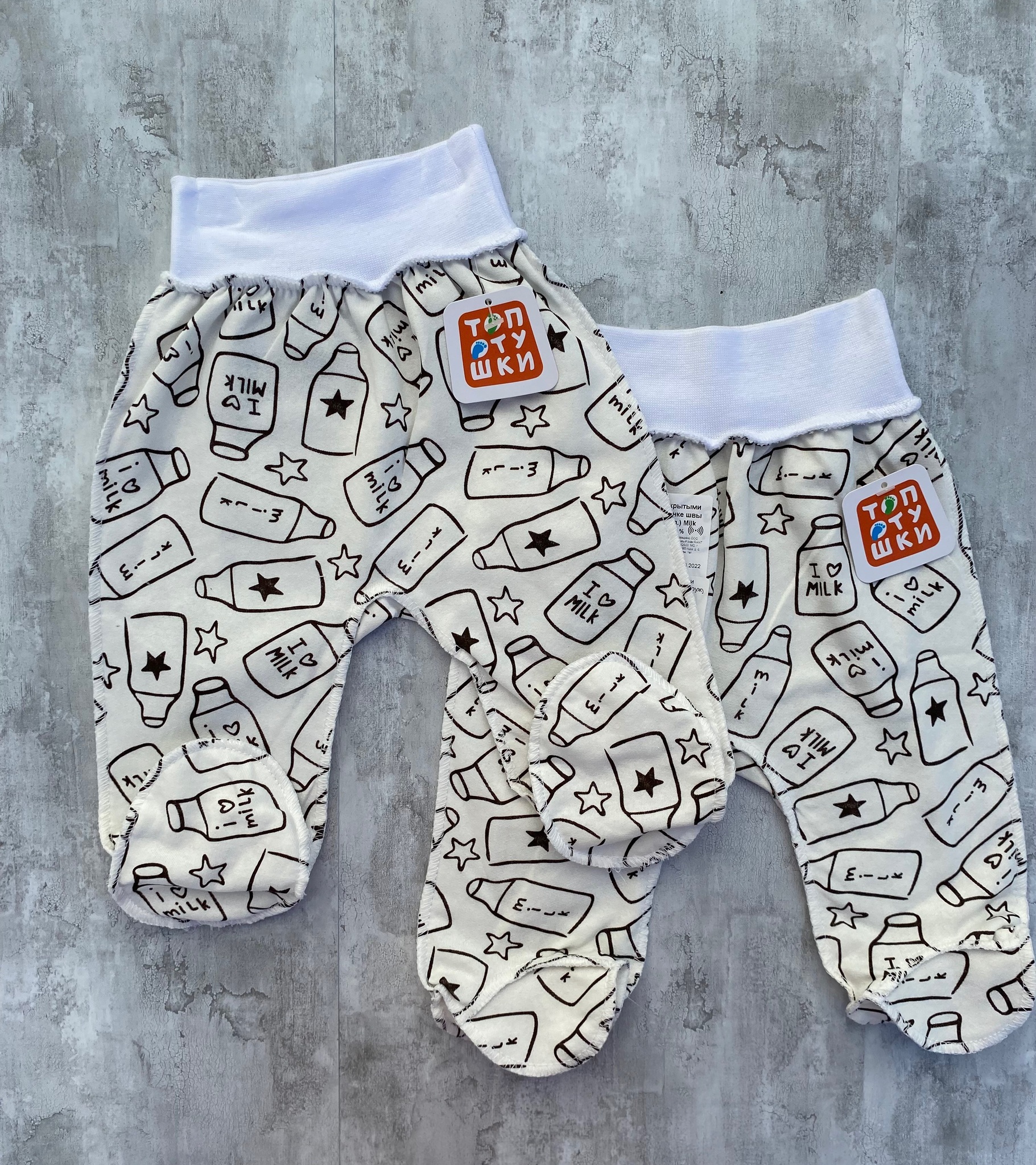 Модель снабжена закрытым носочком и широкой мягкой резиночкой, которая не будет давить на крохотный животик. Также штанишки выполнены швами наружу, чтобы не натирать нежную кожу малыша.