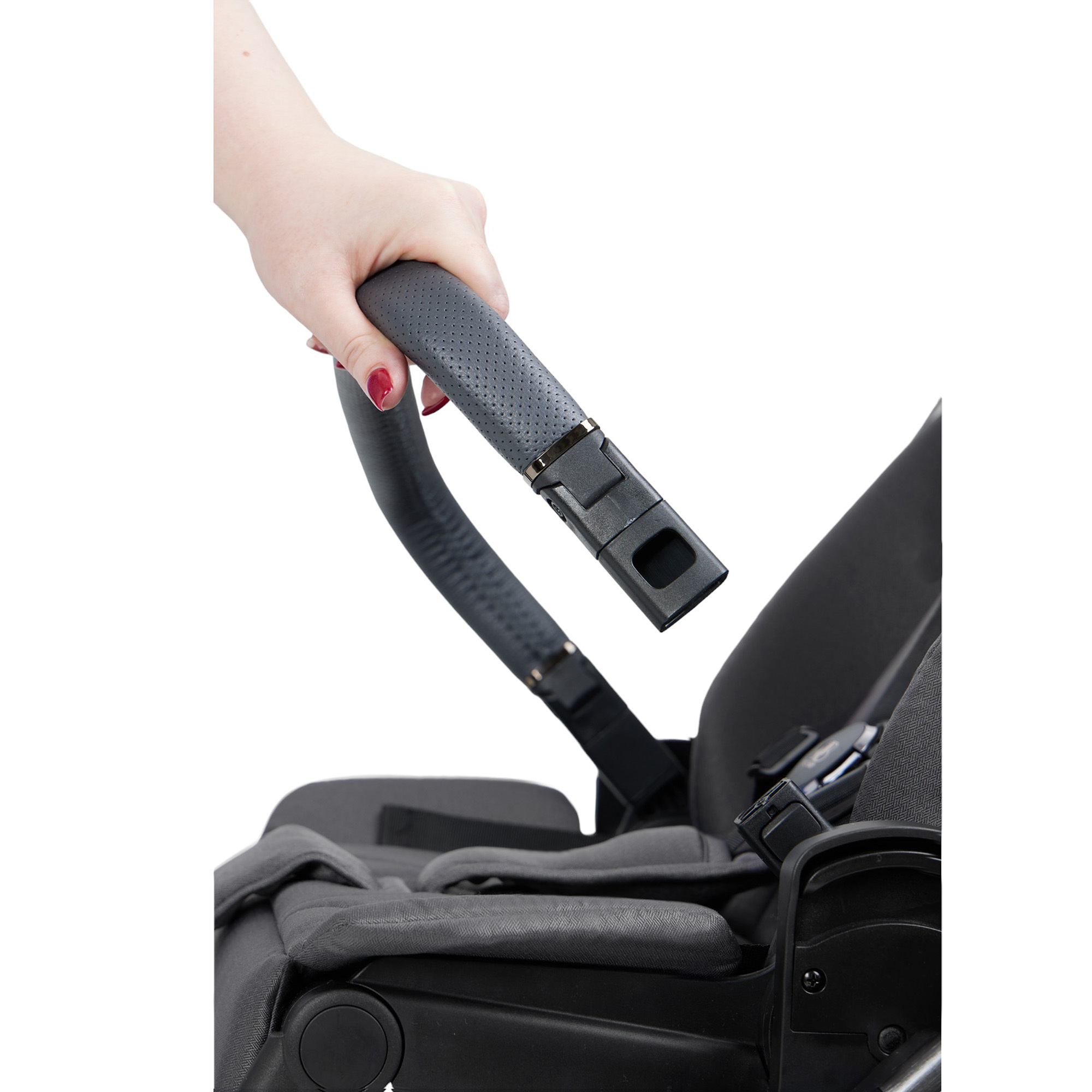 ✔ бампер из эко-кожи легко поворачивается в сторону для посадки малыша;