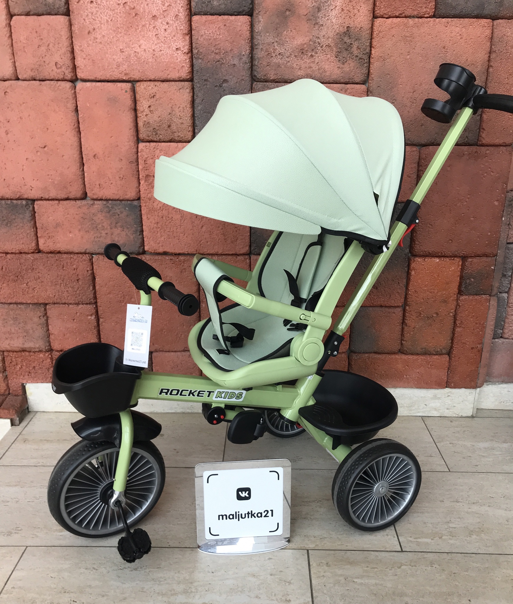 Велосипед 3-х колесный "Ракета 251" Зеленый (колеса EVA, 2 корзины, подставка для ног,скл. козыр